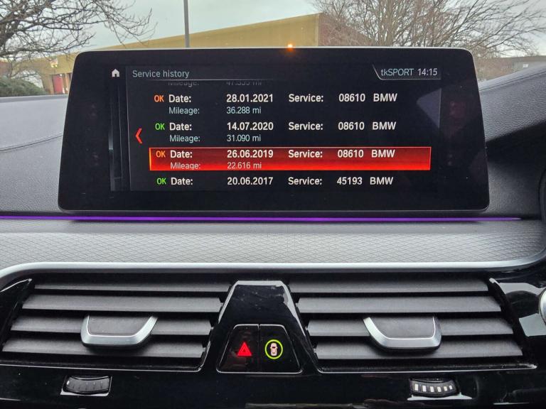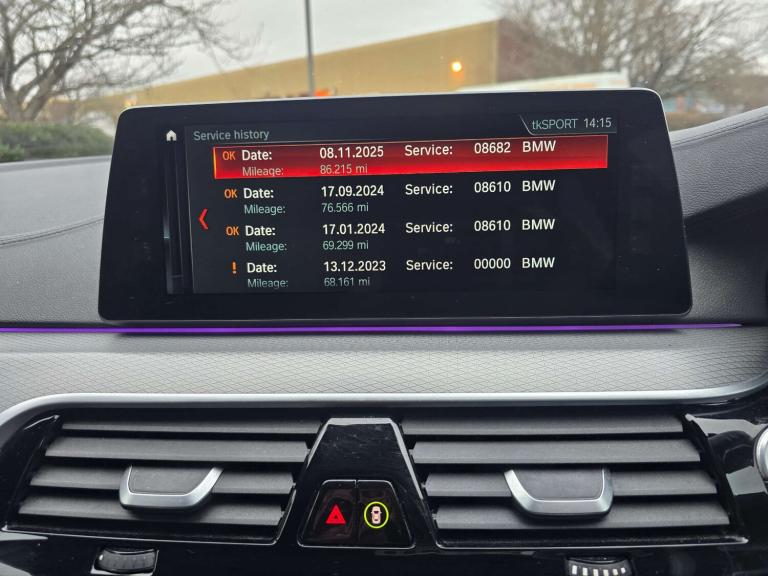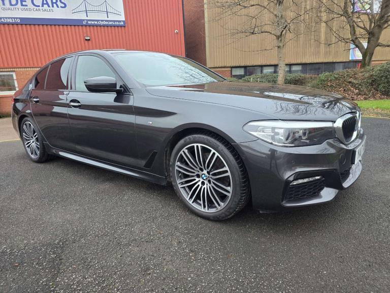 BMW 520D M-SPORT X DRIVE AUTOMATIC SALOON.FINISHED IN METALLIC GREY WITH FULL BLACK LEATHER INTERIOR AND AMBIENT INTERIOR LIGHTING..2 OWNERS FROM NEW, 11 SERVICES IN THE HISTORY, LAST SERVICED NOVEMBER 2025, 2 KEYS AND LONG MOT TO DECEMBER 2026.HUGE SPEC ON THIS CAR WITH DIAMOND CUT ALLOYS, HEATED SEATS, HARMON KARDON SOUND SYSTEM, PARK ASSIST, CRUISE CONTROL, CLIMATE CONTROL, BLUETOOTH, NAVIGATION SYSTEM. OVER £3K OF FACTORY OPTION INCLUDED.THIS IS A LOVELY CAR IN SUPERB CONDITION WITH A COMPREHENSIVE SERVICE HISTORY.WE HAVE A WIDE RANGE OF OVER 30 CARS IN STOCK AND WE ARE OPEN 7 DAYS.PLEASE CONTACT IAIN ON [Phone number removed] FOR FURTHER DETAILS. WWW.CLYDECARS.CO.UK