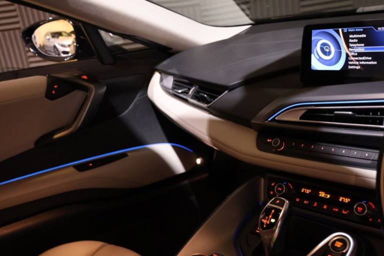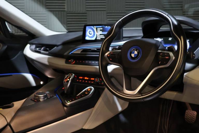 ** Just been into the main dealer for a full new battery replacement at a cost of £10,000 which comes with warranty! 2017 / 17 BMW I8 Coupe Hybrid. Finished in Sophisto Grey Metallic, with Carum Grey Perforated Leather. 27000 Miles Only FBMWSH. Stunning Example, In Superb Order Throughout, One Of The Very Nicest We Have Seen for Its Age and Mileage, Must Be Viewed !! with 20" Alloys, Black Gloss Brake Calipers, Head-Up-Display, Recent Tyres and Brakes. Warranties, Finance and Part Exchange Available. .20" Alloys in Body Colour, Perforated Leather, Head-Up-Display, LED Headlights, Gloss Black Calipers, 20GB HDD Memory, 20in Alloy Wheels - BMW i Turbine-Spoke Style 444, Adaptive LED Headlights with High-Beam Assistant, Air Conditioning - Automatic with Extended Features, Airbags, Alarm System, Ambient Interior Lighting, Armrest - Front Centre, Automatic Start-Stop Button, Auxiliary Input Point for Auxiliary Playing Devices, BMW ConnectedDrive Online Services, BMW ConnectedDrive Services, BMW Display Key, BMW Emergency Call, BMW Mobility System, BMW Professional Radio, BMW Roundel with BMW i Blue Surround - Front and Rear, BMW TeleServices, BMW i Pure Impulse Card, Bonnet - Aluminium with V-Belt Styling in Two Tone High Gloss Black and Body Colour, Brake Callipers - Black, Brake Pad Wear Indicator, Carbon Fibre Reinforced Plastic Roof, Central Locking - Remote, Check Control Warning System, Child Seat ISOFIX Attachment - Two in Rear, Coat Hooks - Rear Left and Right, Concierge Service, Condition Based Service, Cruise Control with Brake Function, Cup Holder - One - Centre Console in Front of Storage Compartment, Cup Holders - Two - Centre Console behind Storage Compartment, DAB Digital Radio, DSC - Dynamic Stability Control - Stabilises the Vehicle in Extreme Situations - Controls Traction, Deformation Zones - Front and Rear, Dihedral Doors - Aluminium Exterior with Carbon Fibre Composite Interior Construction, Direction Indicator - Side Repeaters - Integrated in Exterior Mirrors, Display - 8.8in Colour Screen, Door Mirrors - Electric and Heated and Aspheric, Double-Wishbone Suspension - Front, Drive Performance Control with ECO PRO and Comfort Modes, Driving Assistant with Surround View - Speed Limit Display and High Beam Assistant, Dynamic Brake Lights with LED Technology, EPS - Electric Power Steering, Electric Windows - Front with Open-Close Fingertip Control - Anti-Trap Facility and Comfort Closing Function, Electro Mechanical Parking Brake, Electronic Display of Drivetrain Information and Battery Range and Temperature, Enhanced Bluetooth Telephone Preparation with USB Audio Interface, Exhaust Tailpipes - Two, Extended Storage, Exterior Mirror Housing in Body Colour - Mirror Surround and Top Part of Mirror Housing in High Gloss Black, Favourite Buttons, First Aid Kit and Warning Triangle, Floor Mats - Velour - Anthracite, Fogging Sensor - Front Windscreen, Footwell Lights - Front, Glove Box, Head Restraints - Front Integrated in the Seat Backrest
