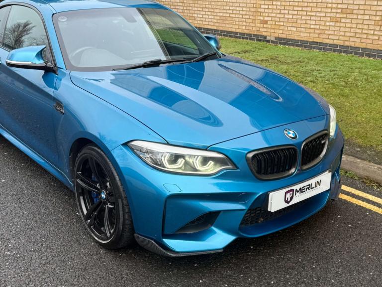 We are delighted to bring to market this cracking Long Beach Blue BMW M2 OG with just 41k miles on the clock and the infamously rare manual gearbox. The specification, mileage, colour and transmission really make this the perfect M2 OG to have. This car boasts a great specification which includes; Icon adaptive headlights, Haran Kardon sound system, Apple car play, keyless entry, through loading system, folding mirrors, black leather with contrast blue stitching, reverse camera, electric front seats with memory for the driver, heated seats, carbon interior, carbon exterior, cruise control and more... This car also benefits from a full service history and a recent differential service. At Merlin Performance we offer a handpicked variety of performance and prestige vehicles, each carefully selected for their rare specification and excellent condition. Unlike other dealerships, we don’t buy our vehicles from auctions. All of our stock is specifically selected, inspected and collected by our passionate team of performance car specialists!All vehicles pass through our 99-point workshop and HPI check, come with a complimentary 6-month nationwide warranty (with options to extend) along with a full service history, two keys and book packs where available. In addition to this, all of our VW/Audi/Porsche vehicles are inspected with VCDS to verify the gearbox mileage against the ECU mileage to ensure no mileage tampering has occurred, as these performance cars are unfortunately common targets for mileage blockers. We're always happy to provide evidence of this. All of these checks provide confidence for our buyers that our cars are genuine, excellent examples. Full walk around videos available on request.Please note, vehicle specification information is provided in good faith but may occasionally be inaccurate. Buyers are advised to confirm all features and specification details with Merlin Performance prior to purchase or collection.Thank you for your interest.