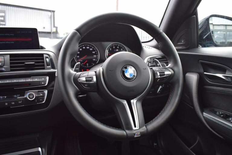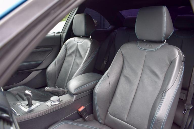 November 2017 67 [LCI] BMW M2 3.0 DCT finished in flagship Long Beach Blue Metallic with full black Dakota leather interior and blue contrast stitching. Just 19250 miles covered by only two owners which is supported with excellent BMW and specialist service history stored in the iDrive with the next service not due November 2026. The last service, completed in November 2024 was a major service which also included spark plugs and differential fluid along with the regular engine oil and filter replacement. Supplied with all correct documentation, handbooks etc and this car has been subjected to our usual strict pre delivery inspection and preparation process ensuring all cosmetic and mechanical elements are in good order including 4 matching Michelin tyres with good tread. Presented superbly throughout from the bodywork to alloys and interior - a cherished, tastefully modified, enthusiast owned M car. This M2 is boasting a fantastic factory spec with a host of sought after optional extras fitted from new resulting in a list price of 49300 with original order form present. Options include: Seat Adjustment - Front Electric with Driver Memory, Loudspeaker System - Harman Kardon, Reversing Assist Camera, Seat Heating for Driver and Front Passenger, Sun Protection Glazing, Exterior Mirrors - Electrically Folding with Anti Dazzle, Speed Limit Info and Headlight Wash. Furthermore, this example benefits from a few tasteful modifications, most notable of which is a set of AST 5100 coilovers supplied and fitted by Litchfield Imports along with corner weighting, 4 wheel alignment, AST top mounts, tapered extended wheel bolts and AST drop links with an accompanying invoice for over 3500. This high-end suspension upgrade offers vastly improved handling, reduced body roll etc with an adjustable ride height and little to to impact on ride quality/harshness. M Performance exhaust tips (carbon) and a carbon exterior kit including front bumper splitters, rear side skirts, mirror caps, rear diffuser and boot lip spoiler complete the upgrades.