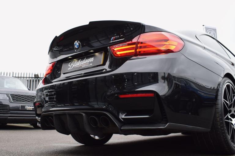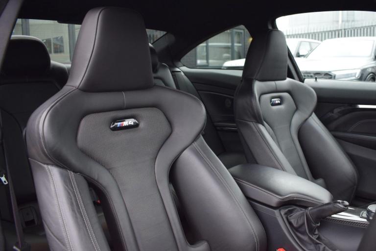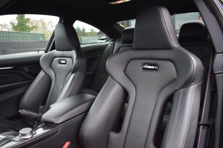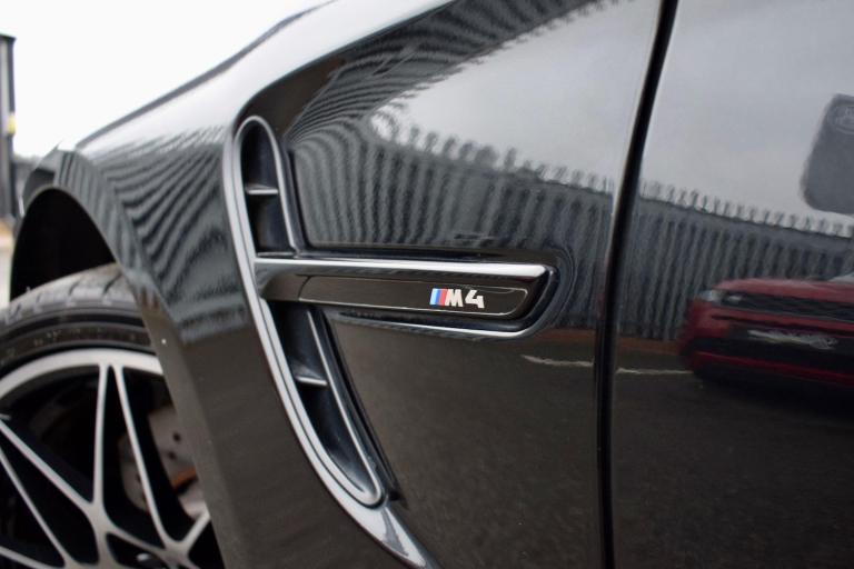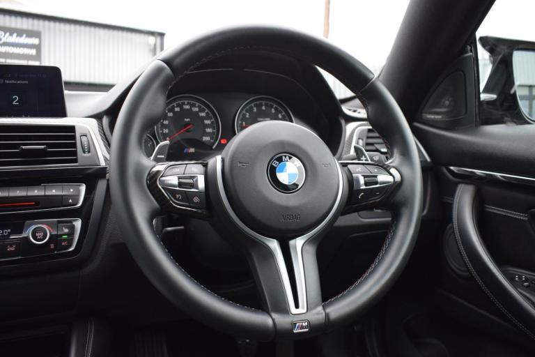 2017 17 BMW M4 3.0 BiTurbo Competition DCT finished in Sapphire Black Metallic with full Black Merino Leather interior. Just 33400 miles covered and supported by service history stored in the iDrive including running-in service. Presented in superb condition inside and out, supplied with all correct documentation etc and subjected to our usual strict pre delivery inspection and preparation process ensuring all cosmetic and mechanical elements are in good order. This example is boasting an incredible factory spec with a long list of options fitted including: Head-Up Display, Loudspeaker System - Harman Kardon, Reversing Assist Camera, Adaptive Headlights, Advanced Parking Package, Enhanced Bluetooth Telephone Preparation with Wireless Charging, Interior Trim Finisher - Carbon Fibre with Black Chrome Highlight, Sun Protection Glazing, Speed Limit Display, Extended Storage, High-Beam Assistant, Armrest - Front with Sliding Adjustment and WiFi Hotspot Preparation. Finally a carbon exterior styling kit has been added including front splitter, rear diffuser, lip spoiler and side skirts. Other highlights include: Exterior Mirrors - Electrically Folding with Anti Dazzle, Exterior Trim - High Gloss Shadowline, Heat Protection Glazing with Green Tint, M Sports Exhaust Finished with Black Chrome Tailpipe Finishers, Windscreen Washer Jets - Heated, Air Conditioning - Automatic - Dual Zone, Automatically Dimming Rear View Mirror, Floor Mats - Velour, Lumbar Support, Heated Seats, Professional Navigation and Media, Rain Sensor with Automatic Headlight Activation, Electric Seats, Start-Stop Button with Comfort Go Keyless Engine Start, Active M Differential, Adaptive M Suspension and more.
