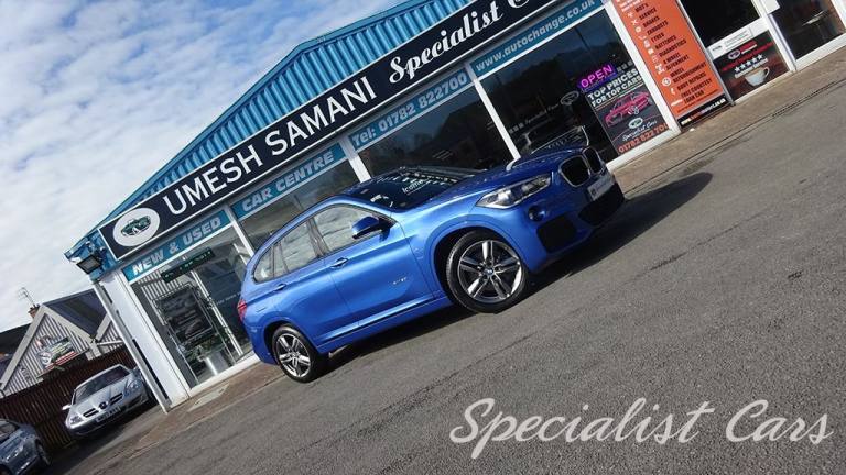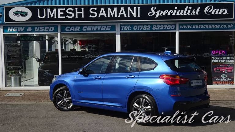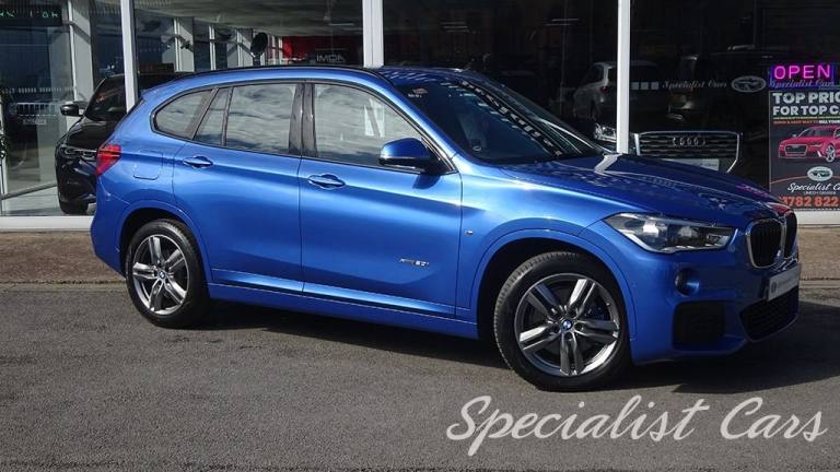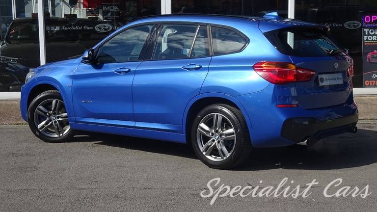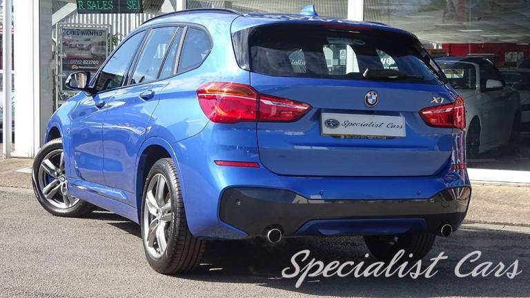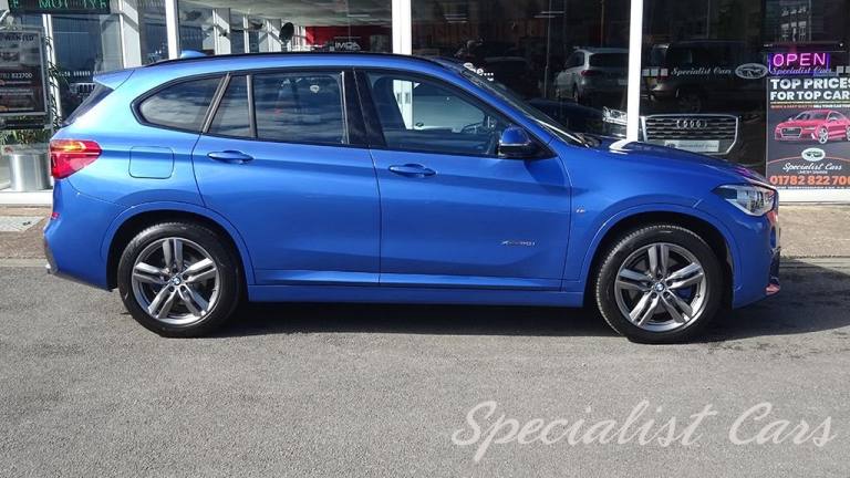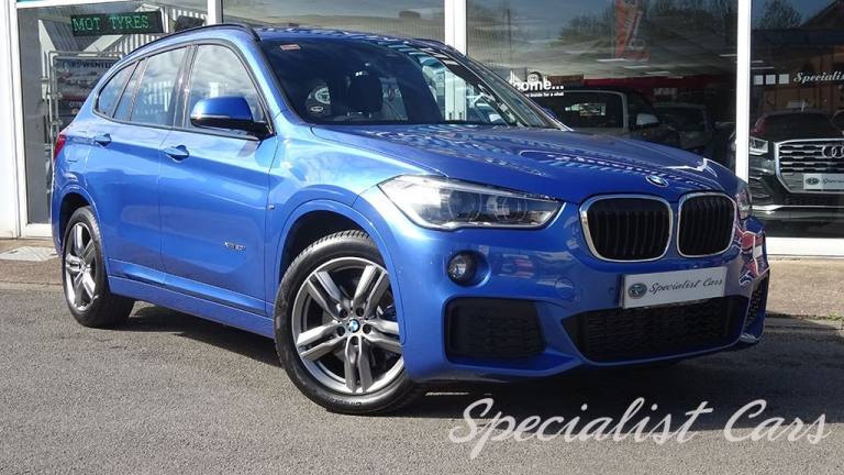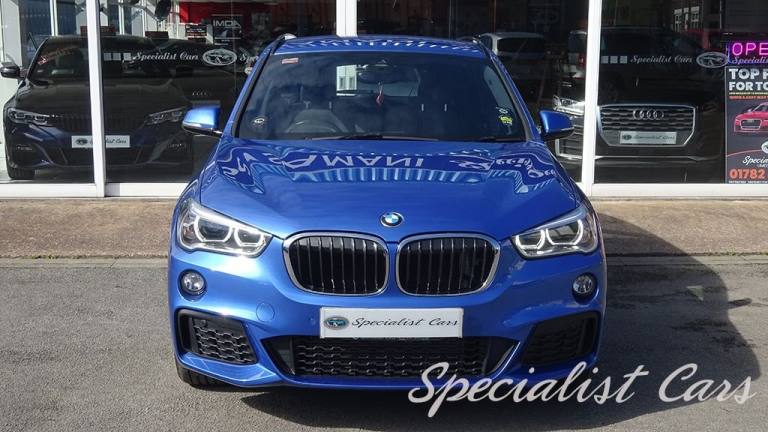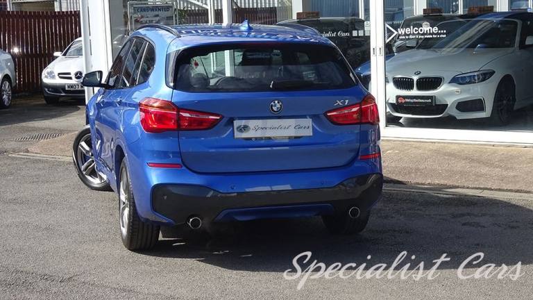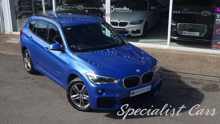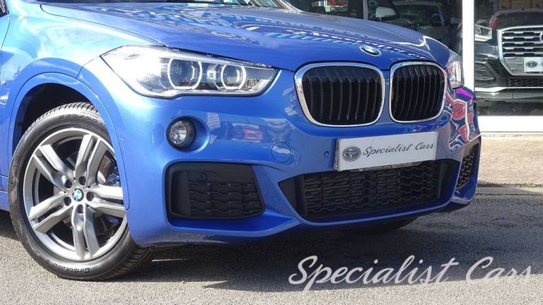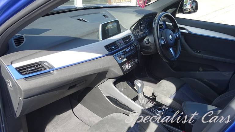 BMW X1 XDrive 2.0i M. Sport Automatic 5dr. Estoril Blue metallic A beautiful one locally owned example with just 28506 miles on the clock, £1695 factory fitted options, in probably one of the best colours. •SAT NAV •Reverse camera and parking sensors front and rear •Heated front seats •18in Alloy Wheels - Light M Double Spoke Style - 570 M •40-20-40 Electrically Split Folding Rear Seat with 60-40 Manual Sliding Bench •Access to BMW Connected Plus for 12 Months from Vehicle Production - Subscription Required •Active Guard •Adaptive LED Headlights with High-Beam Assistant •Air Conditioning Automatic with Two-Zone Control •Alarm System - Thatcham 1 with Remote Control and Engine Immobiliser •Armrest Front - Free Standing and can be Fixed in Five Positions •Automatic Tailgate •Bluetooth Hands Free with USB Audio Interface •BMW ConnectedDrive Online Services •BMW Navigation •BMW Professional Radio with Single CD Player - with MP3 Playback Compatibility •Centre Console - Black - High Gloss •Check Control Warning System for Monitoring of Lights and Door-Luggage Compartment Open Warning •Child Proof Locking System - Rear Doors •Child Seat ISOFIX Attachment for the Two Outer Rear Seats and Front Passenger Seat •Contrast Stitching on Centre Console in Blue - Silver - Grey or Brown to Match Seat Upholstery •Crash Sensor - Activating Central Locking Release - Hazard Warning Lights - Battery Safety Cut •Cruise Control with Brake Function •DAB Digital Radio •Drive Performance Control with ECO PRO - Comfort and Sport Modes •DSC - Dynamic Stability Control Plus •Dynamic Brake Lights •Electric Windows - Front and Rear with Open-Close Fingertip Control - Anti-Trap Facility and Comfort Closing Function •Electrically Operated Handbrake - Parking Brake •Estoril Blue - £550.00 •Exhaust Tailpipe - 75mm - Chrome - Twin - Round - Left and Right Split •Extended Lighting - £220.00 •Extended Storage •Exterior Mirrors Electrically Adjustable •Heat Protection Glazing with Green Tint •Heated Exterior Mirrors •Heated Windscreen Washer Jets •M Aerodynamic Bodystyling •M Sport Steering Wheel •M Sport Suspension •Micro Cloth-Alcantara - Anthracite •Multifunction Controls for Steering Wheel •OBC - On-Board Computer •Optimum.12V Power Socket - Passenger Footwell, 12V Power Socket in Centre Console Front with Blanking Plug, 12V Power Socket in Centre Console Rear with Blanking Plug, 18in Alloy Wheels - Light M Double Spoke Style - 570 M Bi-Colour, 40-20-40 Electrically Split Folding Rear Seat with 60-40 Manual Sliding Bench, Access to BMW Connected Plus for 12 Months from Vehicle Production - Subscription Required, Active Guard, Adaptive LED Headlights with High-Beam Assistant, Aero Curtain, Air Conditioning Automatic with Two-Zone Control, Airbags, Alarm System - Thatcham 1 with Remote Control and Engine Immobiliser, Armrest Front - Free Standing and can be Fixed in Five Positions, Automatic Tailgate, Battery Safety Cut Off, Bluetooth Hands Free with USB Audio Interface, BMW ConnectedDrive Online Services, BMW Emergency Call, BMW Navigation, BMW Professional Radio with Single CD Player - with MP3 Playback Compatibility, BMW TeleServices, Brake Pad Wear Indicator - Front and Rear, Bumper System Front and Rear - Replaceable Deformation Elements for Impacts Up to 9mph, Central Locking Switch - Doors - Fuel Filler Cap - Luggage Compartment, Centre Console - Black - High Gloss, Check Control Warning System for Monitoring of Lights and Door-Luggage Compartment Open Warning, Child Proof Locking System - Rear Doors, Child Seat ISOFIX Attachment for the Two Outer Rear Seats and Front Passenger Seat with Anchorage Points, Condition Based Service, Contrast Stitching on Centre Console in Blue - Silver - Grey or Brown to Match Seat Upholstery, Crash Sensor - Activating Central Locking Release - Hazard Warning Lights - Battery Safety Cut Off - Interior Lighting, Cruise Control with Brake Function, Cupholders - Two, DAB Digital Radio, Direction Indicator Lights - Clear Lenses, Direction Indicator Side Lights Integrated in Exterior Mirrors, Door Sill Finishers - M Designation - Front, Drive Performance Control with ECO PRO - Comfort and Sport Modes, DSC - Dynamic Stability Control Plus, Dynamic Brake Lights, ECO PRO Mode, EDLC - Electronic Differential Lock Control, Electric Windows - Front and Rear with Open-Close Fingertip Control - Anti-Trap Facility and Comfort Closing Function, Electrically Operated Handbrake - Parking Brake, EPS - Electric Power Steering, Estoril Blue, Exhaust Tailpipe - 75mm - Chrome - Twin - Round - Left and Right Split, Extended Lighting, Extended Storage, Exterior Mirrors Electrically Adjustable, Exterior Parts in Body Colour, Exterior Trim - High-Gloss