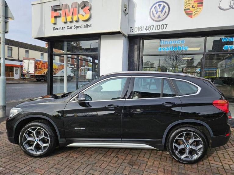 WE AT FM3 Cars would like to offer you another perfect example of a BMW X1 2.0 20D M SPORTS, AUTO, xDrive, 5 Door, 190 BHP, Finished in Metallic Black with Full Black Leather Interior, Heated Front Seats, SAT NAV, Navigation HDD, Climate Control, Gear Shift Paddles - Sport Auto, Adaptive Suspension, Bluetooth, AUX, Radio, CD, 18inch Alloys, REVERSING CAMERA, 2 Keys, Cruise Control, Front and Rear parking sensors, Service History, Dual Zone Climate Control. UK Main Land Delivery and Finance options available. Reserve this car today with only £199 Deposit. All of our cars come provided with a service and MOT. HPI reports are available for all vehicles. Warranties available, subject to suit each individual vehicle. We partner with a wide variety of finance companies, decisions can be made within 60 seconds. Drive your dream car away within 1hour. 5 day drive away insurance available at an additional cost. All part exchanges welcome. Tel; 0161 487 1007. We do take great care in describing the vehicle, its features and history, but errors can be made. Please feel free to ask the sales staff for any particular feature or detail you are not sure about before purchase, as this can not be rectified after purchase. .12V Power Socket - Passenger Footwell, 12V Power Socket in Centre Console Front with Blanking Plug, 12V Power Socket in Centre Console Rear with Blanking Plug, 18in Alloy Wheels - Light Y Spoke Style 569, 3.5mm Auxiliary Input Point for Auxiliary Playing Devices, 40-20-40 Electrically Split Folding Rear Seat with 60-40 Manual Sliding Bench, Active Guard, Adaptive LED Headlights with High-Beam Assistant, Air Conditioning Automatic with Two-Zone Control, Airbags, Alarm System - Thatcham 1 with Remote Control and Engine Immobiliser, Armrest Front - Free Standing and can be Fixed in Five Positions, Automatic Tailgate, BMW ConnectedDrive Online Services, BMW Emergency Call, BMW Navigation, BMW Professional Radio with Single CD Player - with MP3 Playback Compatibility, BMW TeleServices, Battery Safety Cut Off, Bluetooth Hands Free with USB Audio Interface, Brake Pad Wear Indicator, Bumper System Front and Rear - Replaceable Deformation Elements for Impacts Up to 9mph, Central Locking Switch - Doors - Fuel Filler Cap - Luggage Compartment, Check Control Warning System for Monitoring of Lights and Door-Luggage Compartment Open Warning, Child Proof Locking System - Rear Doors, Child Seat ISOFIX Attachment For The Two Outer Rear Seats And Front Passenger Seat, Condition Based Service, Crash Sensor - Activating Central Locking Release - Hazard Warning Lights - Battery Safety Cut Off - Interior Lighting, Cruise Control with Brake Function, Cupholders - Two, DAB Digital Radio, DSC - Dynamic Stability Control Plus, Direction Indicator Lights - Clear Lenses, Direction Indicator Side Lights Integrated in Exterior Mirrors, Door Sill Finishers - Exclusive with BMW Designation - Front, Drive Performance Control with ECO PRO - Comfort and Sport Modes, Dynamic Brake Lights, Dynamic Drive, EDLC - Electronic Differential Lock Control, EPS - Electric Power Steering, Electric Windows - Front and Rear with Open-Close Fingertip Control - Anti-Trap Facility and Comfort Closing Function, Electrically Operated Handbrake - Parking Brake, Exhaust Tailpipe - Chrome - Single Round 75mm - Left, Extended Storage, Exterior Parts in Body Colour, Exterior Trim - Satin Aluminium - Matt, First Aid Kit and Warning Triangle, Floor Mats - Velour, Front Air Inlet with Black Matt Finisher and Silver Matt Highlight, Front Bumper Underbody Protection in Silver Matt, Front Fog Lights, Glove Box with Light, Grab Handles - in Roof Lining x4, Heat Protection Glazing with Green Tint, Heated Exterior Mirrors,