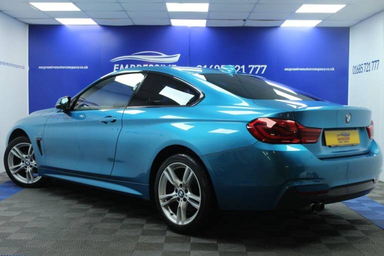 ****MAGNIFICENT M SPORT**** Just in! This Stunning 2018 BMW 4 SERIES 2.0 420i M Sport Coupe 2dr Petrol Auto xDrive Euro 6 (s/s) (184 ps) Finished In Snapper Rocks Blue! 76,387 miles - 2.0L petrol - Automatic - 18" alloy wheels - Automatic LED headlights - Finished in snapper rocks blue - Full leather heated seats - Parking sensors - I drive infotainment system with sat nav - Bluetooth - USB - Automatic 2 zone climate control - Eco mode - Sport mode - Sport+ mode - Traction control - Voice control - Cruise control - Speed limiter - Paddle shift - Auto wipers * 3 MONTH WARRANTY AS STANDARD + * LOW RATE FINANCE AVAILABLE + * UK DELIVERY + * PART EXCHANGE +.12V Power Socket in Front Centre Console and Passenger Footwell, 18in Alloy Wheels - M Double Spoke - 400M, Access to BMW Connected Plus (12 Month Subscription From New), Air Breather - Black High Gloss, Air Conditioning - Automatic with Two-Zone Control, Air Conditioning and Radio Control Panel in High Gloss Black, Airbags, Alarm System - Thatcham 1 with Remote Control and Engine Immobiliser, Ambient Lighting - Switchable BMW Classic Orange - Cold White - LED, Armrest - Front - Folding with Storage Compartment, Battery Safety Cut Off, Bluetooth Hands-Free Facility with USB Audio Interface and Audio Streaming, BMW ConnectedDrive Online Services, BMW Emergency Call, BMW Professional Radio with Single CD Player - with MP3 Playback Compatibility, BMW TeleServices, Bottle Holders Integrated into Door Trim Storage Compartments - Front - Up to 1 litre, Brake Pad Wear Indicator - Front and Rear, Bumper System Front and Rear - Replaceable Deformation Elements for Impacts Up to 9mph, Central Locking Switch - Doors - Fuel Filler Cap - Luggage Compartment, Centre Armrest For Rear Seats - Include Two Cup Holders, Centre Console - Panel Highlight in Chrome, Check Control Warning System for Monitoring of Lights and Door-Luggage Compartment Open Warning, Child Seat ISOFIX Attachment - Rear with Passenger Airbag Deactivation, Condition Based Service, Crash Sensor, Cruise Control with Brake Function, Cup Holders - Two in Front with Sliding Lid, DAB Digital Radio, Dakota Leather - Black with Black Interior, Direction Indicator - Side Repeaters - Integrated in Exterior Mirrors, Direction Indicator Lenses - LED, Door Sill Finishers - M Designation, DSC - Dynamic Stability Control Plus, Dynamic Brake Lights, Electric Windows - Front with Open-Close Fingertip Control - Anti-Trap Facility and Comfort Closing Function, EPS - Electric Power Steering, Exhaust Tailpipes - Dual Left - with Chrome Finisher, Extended Lighting, Exterior Mirrors - Heated - Electrically Adjustable, Exterior Parts in Body Colour, Exterior Trim - High-Gloss Shadowline, First Aid Kit and Warning Triangle, Floor Mats - Velour, Full Black Panel Display, Glove Compartment, Glove Compartment - Opener with Chrome Trim, Handbrake Lever - Gear Knob in Leather, Headlining - Anthracite, Heat Protection Glazing with Green Tint, High Level Third Brake Light, iDrive Controller - 8 Favourite Buttons, Instrument Cluster, Integrated Rear Seat Headrests - Two, Interior Lighting - Front Centre Over Interior Mirror with Soft-