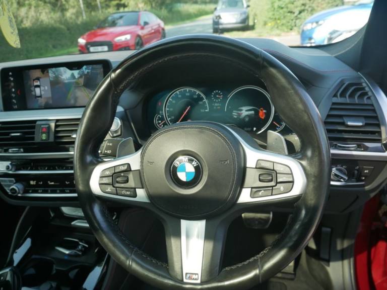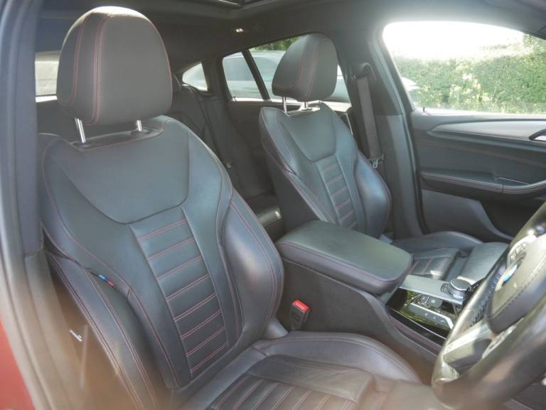 FACELIFT BMW X4 FINISHED IN FLAMENCO RED METALLIC WITH OVER £19000 OF FACTORY EXTRAS FROM NEW! EXTRAS TO INCLUDE SLIDING PANORAMIC ROOF, M SPORT PLUS PACKAGE, PREMIUM AND COMFORT PACKAGE, TECHNOLOGY PACKAGE, DISPLAY KEY, HEAD UP DISPLAY,AND MANY MORE EXTRAS, PLEASE LOOK AT THE SPEC LIST. FULL BMW SERVICE HISTORY, SERVICED @ 14675, 28660, 40920, 42071, 57027, 65740, 73970, 81127, 90000 AND WILL BE SERVICED AGAIN PRIOR TO COLLECTION. OUTSTANDING VALUE. . FINANCE OPTIONS AVAILABLE INCLUDING £0 DEPOSIT SUBJECT TO STATUS. PLEASE CALL FOR FURTHER DETAILS.Panoramic Glass Sunroof, Head-Up Display, Technology Package, Driving Assistant Plus, BMW Display Key, Navigation System - BMW Professional Multimedia, Panoramic Glass Sunroof, Head-Up Display, Apple CarPlay Preparation, Reversing Assist Camera, M Sport Plus Package, Digital Cockpit, Enhanced Bluetooth Telephone Preparation with Wireless Charging, Technology Package, Premium Package, Driving Assistant Plus, Parking Assistant Plus, Comfort Package, Flamenco Red, Vernasca Leather - Black with Red Contrast Stitching, BMW Display Key, 21in Alloy Wheels - Bi-Colour Orbit Grey BMW Individual Light V-Spoke 726 with Run-Flat Tyres, BMW Gesture Control, Sun Protection Glazing, Galvanic Embellisher for Controls, Instrument Panel in Sensatec, Acoustic Glazing, Visibility Pack, Seat Adjustment - Front Electric with Driver Memory, Comfort Access with Smart Opener, 12V Power Socket in Front Centre Console, Active Guard, Adaptive LED Headlights with High-Beam Assistant, Air Conditioning - Automatic, Airbags, Alarm System Thatcham Category 1 with Remote Control and Engine Immobiliser, Ambient Lighting, Armrest - Front with Storage Compartment, Armrest - Rear Centre with Two Cupholders, Attentiveness Assistant, Automatic Transmission with Gearshift Paddles, BMW ConnectedDrive Online Services, BMW Emergency Call, BMW Professional Radio with Single CD Player - with MP3 Playback Compatibility, M Sport Braking System, Exterior Mirrors - Electrically Folding with Anti Dazzle, Extended Storage, BMW Remote Services, BMW TeleServices, Battery Safety Cut Off, Lumbar Support - Driver and Front Passenger, Bottle Holders Integrated into Door Trim Storage Compartments - Front - up to 1 litre - Rear - Up to 750ml, Brake Pad Wear Indicator - Front and Rear, Bumper System - Front and Rear, Loudspeaker System - Harman Kardon, Bumpers - Body Colour, Central Locking Switch for All Doors - Fuel Filler Cap - Luggage Compartment, Check Control Warning System for Monitoring of Lights and Door-Luggage Compartment Open Warning, Child Proof Locking System - Rear Doors, Child Seat ISOFIX Attachment - Rear, Condition Based Service, Control Display - 6.5in Colour Screen, Crash Sensor, Cruise Control with Brake and Speed Limiting Function, Cup Holders - Front - Two with Removable Oddments Tray-Lid, DAB Digital Radio, DSC - Dynamic Stability Control - Stabilises the Vehicle in Extreme Situations - Controls Traction, Direction Indicator - Side Repeaters - Integrated in Exterior Mirrors, Door Handles - Bo