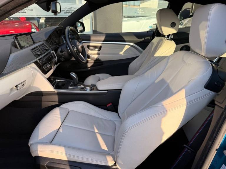 PER4MANCE CARS ARE DELIGHTED TO OFFER THIS STUNNING 2018 BMW 440i M SPORT COUPE (326PS) FINISHED IN THE BEAUTIFUL SNAPPER ROCKS BLUE METALLIC PAINT WITH IVORY WHITE DAKOTA LEATHER SEATS WITH MEMORY AND HEATING, MAINTAINED BY BMW FRANCHISE DEALERS FROM NEW FROM ONLY 2 OWNERS, THIS CAR COMES EQUIPPED WITH BMW PROFESSIONAL NAVIGATION, HARMAN/KARON SURROUND SOUND, BMW I DRIVE, DUAL CLIMATE CONTROL, CRUISE CONTROL AND BLUETOOTH, 4 RECENT BRAND NEW TYRES AND LAST SERVICED IN NOVEMBER 2025. FOR FURTHER INFORMATION ON THE STUNNING CAR, CONTACT OUR EXPERIENCED SALES TEAM TODAY ON [Phone number removed] OR EMAIL [Email address removed. Click Email button to contact us.]. EXTENDED WARRANTY AND TAILORED FINANCE PACKAGES AVAILABLE ON REQUEST. .12V Power Socket in Front Centre Console and Passenger Footwell, 18in Alloy Wheels - M Double Spoke - 400M, 6.5in Colour Display Screen, Access to BMW Connected Plus (12 Month Subscription From New), Air Breather - Black High Gloss, Air Conditioning - Automatic with Two-Zone Control, Air Conditioning and Radio Control Panel in High Gloss Black, Airbags, Alarm System - Thatcham 1 with Remote Control and Engine Immobiliser, Ambient Lighting - Switchable BMW Classic Orange - Cold White - LED, Armrest - Front - Folding with Storage Compartment, BMW ConnectedDrive Online Services, BMW Emergency Call, BMW Professional Radio with Single CD Player - with MP3 Playback Compatibility, BMW TeleServices, Battery Safety Cut Off, Bluetooth Hands-Free Facility with USB Audio Interface and Audio Streaming, Bottle Holders Integrated into Door Trim Storage Compartments - Front - Up to 1 litre, Brake Pad Wear Indicator - Front and Rear, Bumper System Front and Rear - Replaceable Deformation Elements for Impacts Up to 9mph, Central Locking Switch - Doors - Fuel Filler Cap - Luggage Compartment, Centre Armrest For Rear Seats - Include Two Cup Holders, Centre Console - Panel Highlight in Chrome, Check Control Warning System for Monitoring of Lights and Door-Luggage Compartment Open Warning, Child Seat ISOFIX Attachment - Rear with Passenger Airbag Deactivation, Condition Based Service, Crash Sensor, Cruise Control with Brake Function, Cup Holders - Two in Front with Sliding Lid, DAB Digital Radio, DSC - Dynamic Stability Control Plus, Direction Indicator - Side Repeaters - Integrated in Exterior Mirrors, Direction Indicator Lenses - LED, Door Sill Finishers - M Designation, Dynamic Brake Lights, EPS - Electric Power Steering, Electric Windows - Front with Open-Close Fingertip Control - Anti-Trap Facility and Comfort Closing Function, Exhaust Tailpipes - Dual Left - with Chrome Finisher, Extended Lighting, Exterior Mirrors - Heated - Electrically Adjustable, Exterior Parts in Body Colour, Exterior Trim - High-Gloss Shadowline, First Aid Kit and Warning Triangle, Floor Mats - Velour, Full Black Panel Display, Glove Box, Glove Compartment, Handbrake Lever - Gear Knob in Leather, Headlining - Anthracite, Heat Protection Glazing with Green Tint, High Level Third Brake Light, Instrument Cluster, Integrated Rear Seat Headrests - Two, Interior Lighting - Front Centre Over Interior Mirror with Soft-Light and Rear Centre, Interior Trim - Aluminium Hexagon Trim Finishers with Estoril Blue