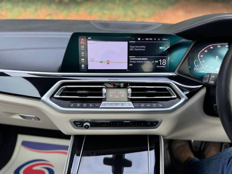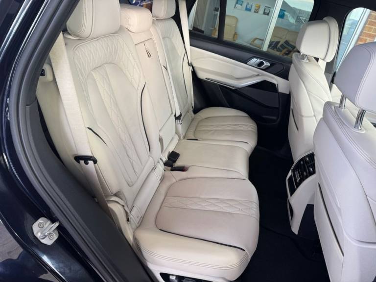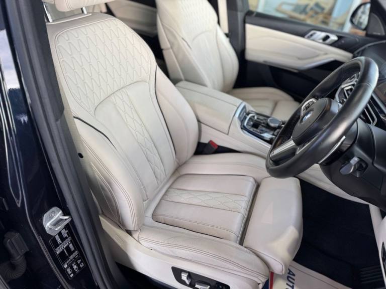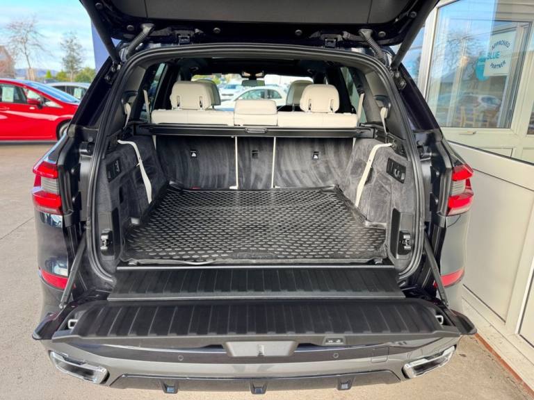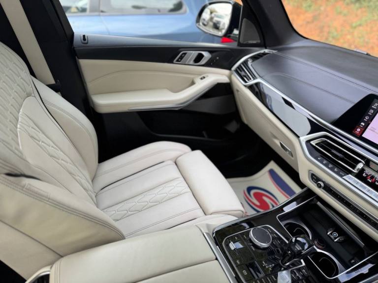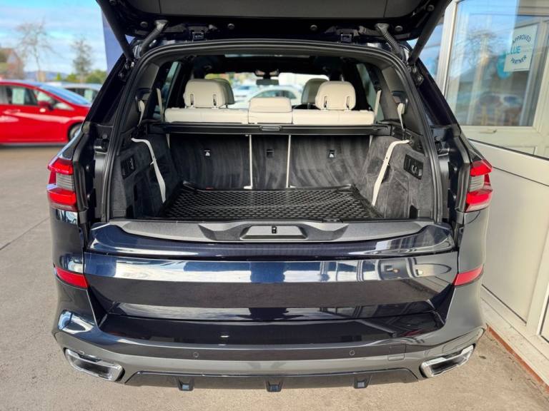 7 x SEATS / 6 x SERVICES / EXTENDED MERINO LEATHER (IVORY WHITE) / ACCOUSTIC GLASS / PANORAMIC GLASS ROOF / HEADS UP DISPLAY / DRIVING ASSISTANCE PACKAGE / PIANO BLACK INTERIOR DASH / INSTRUMENT PANEL FINISHED IN LEATHER No Deposit Finance Available, Part-Exchange Welcome, Comprehensive Warranty with Every Car .Black Sapphire, 20GB Hard Disc Drive HDD Memory, Adaptive 2-Axle Air Suspension, Attentiveness Assistant, BMW Connected Package Professional, BMW ConnectedDrive Online Services, BMW Emergency Call, BMW Live Cockpit Professional, BMW TeleServices, Brake Force Display, Brake-Pad Wear Indicator, Cruise Control with Brake Function, DAB Tuner, Daytime Running Lights - LED, Drive Performance Control with ECO PRO - Comfort and Sport, Dynamic Brake Lights with LED Technology, EPS - Electric Power Steering with Servotronic, Enhanced Bluetooth Telephone Preparation with Wireless Charging, Follow Me Home Headlight Function, HiFi Loudspeaker System, LED Fog Lights, LED Headlights, LED Rear Lights, M Sport Braking System, OBC - On Board Computer, Oil Sensor For Level and Grade, PDC - Park Distance Control - Front and Rear, Parking Assistant, Power Sockets 12v - 2x Centre Console - 1x Luggage Compartment, Speed Limiting Function, Sport Automatic Transmission, TPMS - Tyre Pressure Monitoring, Telephony with Wireless Charging, Third Brake Light - Spoiler, USB Connection - USB Type A 1.5A in Cupholder - USB Type C 3A in Centre Armrest, WiFi Hotspot Preparation, iDrive Touch Controller with Shortcut Buttons, 20in Alloy Wheels - M light Star-Spoke Style 740 M Bicolour with Mixed Tyres and Run Flat Tyres, Active Air Stream Kidney Grille, Adaptive Air Flap Control Bar - High-Gloss Black, BMW Individual High-Gloss Shadowline, BMW Individual Roof Rails High-Gloss Shadow Line, Electric Windows - Front and Rear with Open-Close Fingertip Control - Anti-Trap Facility and Comfort Closing Function, Exhaust Tailpipes - Single - Left and Right - Chrome, Expanded Exterior Mirror Package, Exterior Mirror Housing - Body Colour, Exterior Mirrors - Electrically Adjustable - Automatic Parking Function - Heated and Drivers Anti-Dazzle, Front Grille Bars - Pearlescent Chrome, Heated Windscreen Washer Jets, Locking Wheel Bolts, M Aerodynamic Bodystyling, M Designation on Front Side Panels - Left and Right, Outer and Centre Air Intakes on Front Bumper - High-Gloss Black with Pearlescent Chrome Finish, Run-Flat Tyres, Side Elements - High Gloss Black, Side Window Graphics - Satin Aluminium, X5 on Tailgate - Left, xDrive Designation on Tailgate - Right, Active Guard Plus, Airbags - Driver - Front Passenger- Rear and Side, Alarm System - Thatcham 1 with Remote Control and Engine Immobiliser, Brake System, Centre Lock Switch - Driver and Front Passenger Door, Child Seat ISOFIX Attachment - Outer Rear