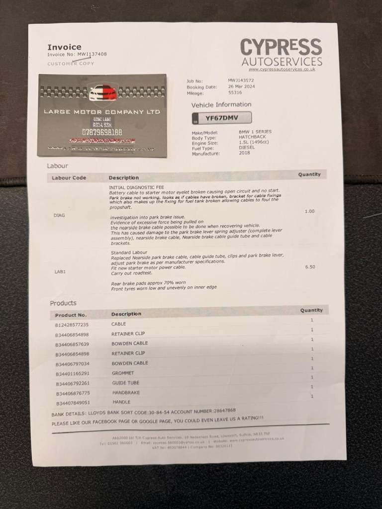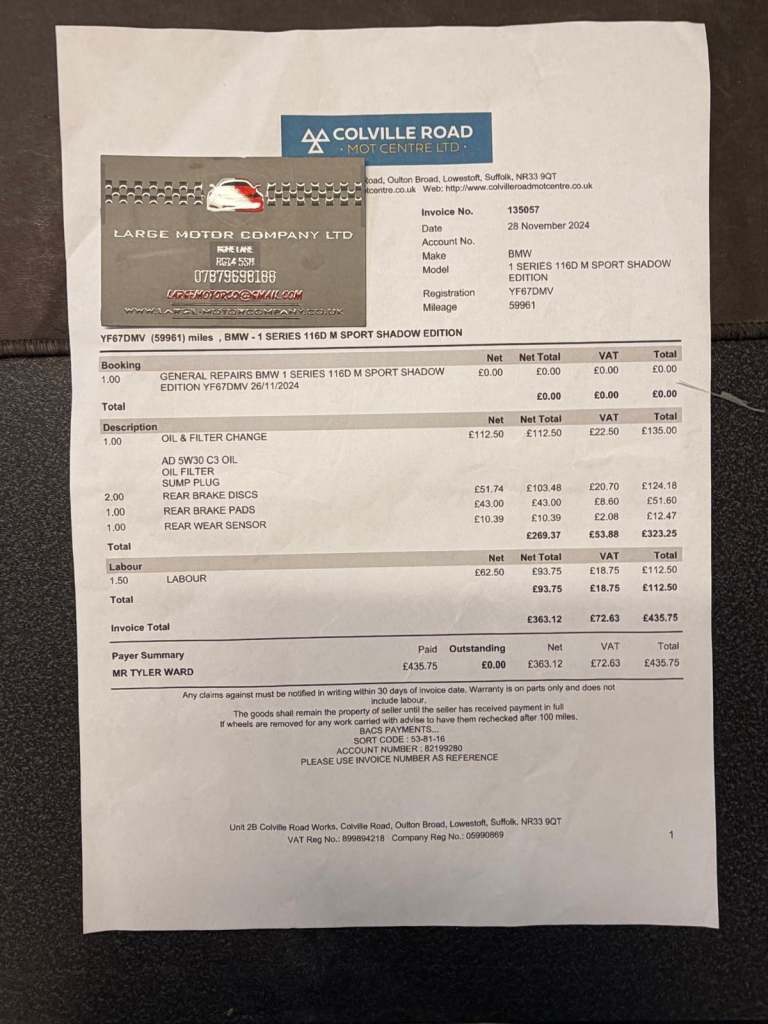 This 2018 BMW 1 Series 116d M Sport Shadow Edition presents a compelling proposition with its remarkably low mileage for its age, having covered just 65,911 miles. This Euro 6 compliant 1.5L diesel model, presented in the desirable M Sport Shadow Edition trim, benefits from a recent service at 59,961 miles and will come with a full 12 months MOT for your peace of mind. A 3 month warranty is also included.The M Sport Shadow Edition boasts a range of notable features designed to enhance your driving experience. Inside, you'll find the Interior Comfort Package, complete with climate control, and convenient electric windows with an anti trap facility and comfort closing function. Parking is made effortless with Park Distance Control for both the front and rear, supported by front and rear parking sensors. The integrated grab handles in the roof linings add a touch of practicality, while the crisp LED headlights ensure excellent visibility. Furthermore, this BMW 1 Series offers generous boot space, making it a practical choice for everyday use and longer journeys.