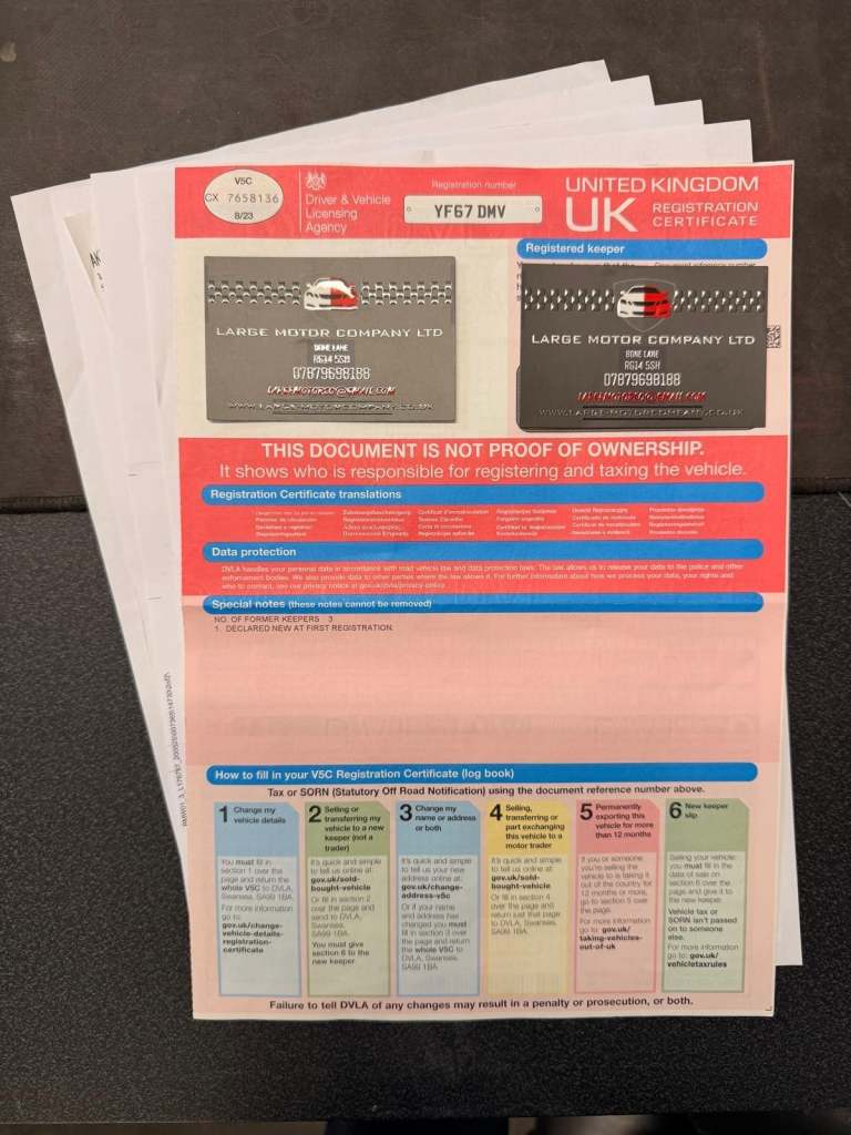 - Original number plateAdvisoryDifferent number plates are commonplace. Ensure the number plates on the car match the V5C documentation. Be sure of what number plate comes with the car you are buying.