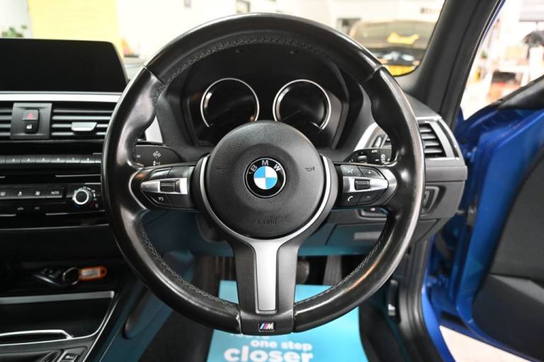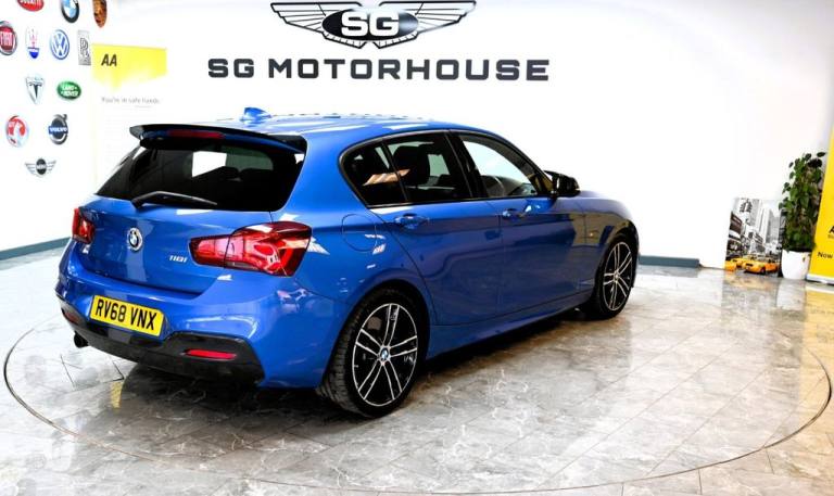 HUGE SPEC - BMW 1 SERIES 1.5 118i M SPORT / ULEZ FULL SERVICE HISTORY + 2 CAREFUL OWNERS FROM NEW + GLOSS BLACK FRONT BUMPER LIP & ROOF SPOILER + HARMAN KARDON SOUND + SATELLITE NAVIGATION + FULL LEATHER INTERIOR + HEATED SEATS + PARKING AID + AUTO LIGHTS + PUSH START + CRUISE CONTROL + BMW PROFESSIONAL AUDIO / BLUETOOTH / BT AUDIO / DAB RADIO / AUX / USB + 6 SPEED MANUAL GEARBOX + STEERING CONTROLS + ECO FRIENDLY + START/STOP TECHNOLOGY + ALLOY WHEELS + ELECTRIC WINDOWS + ELECTRIC DOOR MIRRORS + FOG LIGHTS + CLIMATE CONTROL + FRONT & REAR HEATED SCREEN FRESH SERVICE + 12 MONTHS MOT CHECKED & INSPECTED FREE 6 MONTHS NATIONWIDE WARRANTY (ALL MECHANICAL & ELECTRICAL - PARTS AND LABOUR INCLUDED) +++ FREE 12 MONTHS AA BREAKDOWN COVER 0% DEPOSIT FINANCE AVAILABLE ALL HPI CLEAR +++ ANY P/X WELCOME. Road Tax Opt, We accept all major CREDIT & DEBIT Cards, optional 5 Days Drive Away Insurance OPTIONAL, Located 5 mins from Hoddesdon OR Broxbourne train station, 21 High Street, EN11 8SX RESERVE ANY CAR FOR ONLY £100 - DEPOSIT FULLY REFUNDABLE SUBJECT TO VIEWING .12V Power Socket - Centre Console, 12V Power Socket - Passenger Footwell, 18in Alloy Wheels - M Double Spoke - 719M Bicolour Jet Black, Active Differential Brake - ADB Sport - Electronic Differential Lock in DSC-Off Mode, Air Conditioning - Automatic - Single Zone, Airbags, Alarm System - Thatcham 1 with Remote Control and Engine Immobiliser, Ambient Lighting - Switchable BMW Classic Orange - Cold White - LED, Armrest - Front with Sliding Adjustment, Battery Age Recognition Function, Battery Safety Cut Off, Black High-Gloss Kidney Grille Frame with Black Slats, Bluetooth Hands Free with USB Audio Interface, BMW ConnectedDrive Online Services, BMW ConnectedDrive Services, BMW Emergency Call, BMW Navigation System, BMW Professional Radio - Single CD and MP3, BMW TeleServices, Brake Pad Wear Indicator - Front and Rear, Bumper System Front and Rear - Replaceable Deformation Elements for Impacts Up to 9mph, Central Locking Switch - Doors - Fuel Filler Cap - Luggage Compartment, Check Control Warning System for Monitoring of Lights and Door-Luggage Compartment Open Warning, Child Proof Locking System - Rear Doors, Child Seat ISOFIX Attachment for the Two Outer Rear Seats, Condition Based Service, Crash Sensor - Activating Central Locking Release - Hazard Warning Lights - Battery Safety Cut Off - Interior Lighting, Cruise Control with Brake Function, Cupholders Two with Sliding Cover and Inlay Mat, DAB Digital Radio, Darkened Rear Lights with LED Light Bars, Direction Indicator - Side Repeaters - Integrated in Exterior Mirrors, Direction Indicator Lights - Clear Lenses, Door Sill Finishers - M Designation, Drive Performance Control - ECO PRO - Comfort - Sport - Sport Plus Modes, DSC - Dynamic Stability Control Plus, Dynamic Brake Lights, ECO PRO Mode, Electric Windows - Front and Rear with Open-Close Fingertip Control - Anti-Trap Facility and Comfort Closing Function, EPS - Electric Power Steering, Estoril Blue, Exhaust Tailpipes - Dark Chrome, Extended Lighting, Extended Storage, Exterior Mirrors Electrically Adjustable, Exterior Parts in Body Colour, Exterior Trim - High Gloss Shadowline, First Aid Kit and Warning Triangle, Floor Mats - Velour, Gearshift Lever with M Designation - Short-Shift, Glove Compartment, Glovebox - Handle with Chrome Surround, Grab Handles - Integrated in Roof Linings - Four, Handbrake and Gear Knob - Leather, Head Restraints - Rear and Folding, Headlining - Anthracite, Heat Protection Glazing with Green Tint, High Level Third Brake Lig