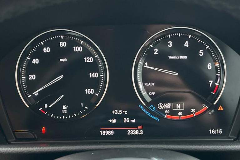 Active Guard incl speed limiting and lane departure functions with auto steering, and front collision warning with brake intervention, Apple car play, Attentiveness assist, Automatic tailgate operation, BMW Online services, BMW remote services, BMW Teleservices, Brake pad wear indicator in front and rear, Check Control warning system for monitoring of lights and door/luggage compartment open warning, Cruise control with brake assist, Front/rear park distance control (PDC), Instrument cluster with speedometer with miles per hour read out, tachometer and fuel gauge, Lights on warning by audio warning signal when ignition is switched off, On board computer - average speed+fuel consumption, service interval, clock/date, odometer/trip meter, outside temperature display and ice warning, Optimum shift indicator, Park assist system with steering assist, Personal Profile - automatic lock when driving away selectable, Real time traffic information, Service interval indicator, Servotronic variable electric power steering (EPS), Speed limiter, Body colour - front and rear bumpers, door handles, mirror caps, roof mouldings, Chrome line exterior trim, Clear lenses direction indicator lights, Direction indicator side lights integrated exterior mirrors, Dynamic brake lights, Electric windows - front and rear, with open/close fingertip control, anti-trap facility and comfort closing, Electrically adjustable door mirrors with aspheric on driver side, convex on passenger side with integrated