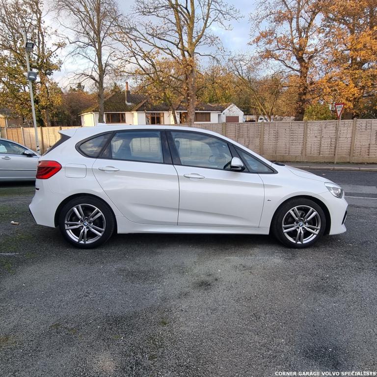 CORNER GARAGE ARE PLEASED TO OFFER FOR SALE THIS FANTASTIC 2018 BMW 2 SERIES ACTIVE TOURER 218i M SPORT. ORIGINALLY PURCHASED ON 19TH SEPTEMBER 2018, THE CAR HAS BEEN SERVICED CONTINUALLY ALL ITS LIFETIME AND HAS A SERVICE BOOK WITH FULL SERVICE HISTORY. FITTED WITH A 1.5-140bhp PETROL ENGINE, 6 SPEED MANUAL GEARBOX, THE CAR DRIVES WONDERFULLY GIVING A GREAT DRIVING EXPERIANCE FOR ALL OCCUPANTS. THE INTERIOR IS STYLED WITH FULL BLACK LEATHER SEATS. OTHER COMFORT FEATURES INCLUDE : ELECTRIC FRONT AND REAR WINDOWS, ELECTRIC MIRRORS, HEIGHT ADJUSTABLE STEERING WHEEL, BLUETOOTH HANDSFREE SYSTEM, SATELLITE NAVIGATION, DAB RADIO, USB AND AUX CONNECTIVITY.THIS VEHICLE HAS ADDITIONAL FEATURES WHICH INCLUDE REAR PARKING SENSORSTHE EXTERIOR IS FINISHED IN WHITE WITH 18"" INCH ALLOY WHEELS. THE M SPORT IS FITTED WITH DRIVER AND PASSENGER AIRBAGS, PASSENGER AIRBAG CUT OFF SWITCH, INFLATION CURTAINS, SIDE IMPACT PROTECTION SYSTEM (SIPS), ANTI LOCK BRAKING SYSTEM (ABS), TRACTION CONTROL (TRACS), ISOFIX, 3 POINT INERTIA SEATBELTS, REMOTE CENTRAL LOCKING, ALARM DEADLOCKS AND IMMOBILISOR. THE VEHICLE WILL COME WITH 12 MONTHS MOT, 3 MONTHS / 3,000 MILES WARRANTY ( WHICHEVER IS SOONEST, T&Cs APPLY ) AND A FULL SERVICE. AT CORNER GARAGE WE HAVE BEEN SOURCING GOOD QUALITY CARS FOR OUR CUSTOMERS FOR OVER 25 YEARS AND WE HAVE SEEN SO MANY CUSTOMERS COME BACK TIME AND TIME AGAIN TO BUY THEIR NEXT VEHICLE. WE TAKE GREAT PRIDE IN FINDING THE RIGHT CAR TO SUIT PEOPLES NEEDS AND LOOK FORWARD TO SEEING OUR CUSTOMERS AGAIN EITHER TO SERVICE THEIR CAR OR UPGRADE THEM INTO ANOTHER QUALITY USED VEHICLE. EQUIPMENT : ATTENTIVENESS ASSIST, AUTOMATIC TAILGATE OPERATION, BMW ONLINE SERVICES, BMW REOTE SERVICES, BMW TELESERVICES, CHECK CONTROL SYSTEM CRUISE CONTROL WITH BRAKE ASSIST, DOOR/BOOT OPEN WARNING LIGHT, FORWARD COLLISION WARNING, LIGHTS ON WARNING, OIL TEMPERATURE GUAGE, ON BOARD COMPUTER, OUTSIDE TEMPERATURE DISPLAY, PERSONNAL PROFILE, SERVICE INTERVAL INDICATOR, SPEED LIMITER, STOP/START BUTTON, DRIVE PERFORMANCE CONTROL, ELECTRINIC DIFFERENTIAL LOCK, 2 X USB SOCKETS IN FRONT, BLUETOOTH AUDIO STREAMING, BMW PROFESSIONAL RADIO,CD,MP3, DAB DIGITAL RADIO, BODY COLOUR BUMPERS, DOOR HANDLES, ROOF MOULDINGS, CHROME EXHAUST TAILPIPE, CHROME KIDNEY GRILLE WITH BLACK VERTICAL SLATS, DOOR SILL FINISHERS, ELECTRIC ADJUST HEATED DOOR MIRRORS, ELECTRIC FRONT AND REAR WINDOWS WITH ONE TOUCH AND UP DOWN FUNCTION, FOLLOW ME HOME HEADLIGHTS, HEAT INSULATING TINTED GLASS, HEATED WINDSCREEN WASHER JETS, HIGH BEAM ASSISTANT, LED DAYTIME RUNNING LIGHTS, LED FRONT FOGS, RAIN SENSOR INCLUDING AUTO HEADLIGHTS ACTIVATION, REAR WIPER, WELCOME LIGHTING, 3 X REAR HEADRESTS, 3 SPOKE LEATHER M SPORT MULTIFUNCTION SPORTS STEERING WHEEL, 4 GRAB HANDLES, ANTHRACITE HEADLINING, ANTHRACITE VELOUR FLOOR MATS, DAKOTA LEATHER UPHOLSTERY, DUAL ZONE AUTOMATIC AIR CONDITIONING, FRONT ARMREST, FRONT HEAD RESTRAINTS, FRONT SPORTS SEATS WITH ELECTRIC SIDE BOLSTER ADJUSTMENT, FRONT AND REAR ARMRESTS WITHIN DOOR PANELS, ILLUMINATED GLOVEBOX, ISOFIX FRONT PASSENGER AND REAR SEAT PREPARATION, LUGGAGE COMPARTMENT LIGHTING, MULTIFUNCTION STEERING WHEEL, REACH AND RAKE ADJUST STEERING COLUMN, REAR CENTRE ARMREST, SLIDING REAR SEATS WITH FRONT UNDER SEAT STORAGE, SUNVISORS, EXTENDED STORAGE PACK - 2 SERIES ACTIVE/GRAN TOURER, 3 POINT SEATBELTS ON ALL SEATS, ABS, BMW EMERGENCY CALL, BRAKE ASSIST FUNCTION, CHILDPROOF REAR DOOR LOCKS, COLLISION MITIGATING BRAKING SYSTEM, CRASH SENSOR - ACTIVATES HAZARD AND INTERIOR LIGHTING AND UNLOCKS DOORS, DRIVER AND FRONT PASSENGER AIRBAGS, DSC+, DTD(DYNAMIC TRACTION CONTROL), FRONT AND REAR CURTAIN AIRBAGS, FRONT P[ASSENGER AIRBAG DEACTIVATION, FRONT SEATBELT FORCE LIMITERS, FRONT SEATBELT PRETENTIONER, FRONT SIDE AIRBAGS, HILL START ASSIST, SEATBELT WARNING, SIDE IMPACT PROTECTION, TYRE PRESSURE MONITORING SYSTEM, WARNING TRIANGLE, ELECTRONIC IMMOBILISER, KEY INTEGRATED REMOTE CONTROL CENTRAL LOCKING, LOCKING WHEEL BOLTS, REMOTE CONTROL THATCHAM CATEGORY 1 ALARM, 18 INCH M DOUBLE SPOKE ALLOY WHEELS - STYLE 486, RUN FLAT TYRES.