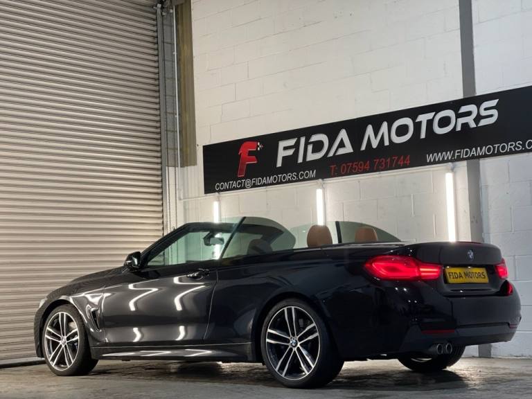 Fida Motors is proud to offer this reliable and sought-after car, the BMW 4 SERIES 2.0 420d M Sport Convertible 2dr Diesel Auto Euro 6. Key Features: -Harmon Kardon Speakers -Rev Camera -M Sport Package -Digital Dash -Heated Steering Wheel -Warm Air Collar -High Beam Assist This vehicle comes with 2 keys. Please note: A £99 admin fee applies to all vehicle purchases. A £299 admin fee applies to all third party finance. Youll have peace of mind knowing this vehicle comes with a service history, viewable on our website [[Website URL removed]]. For a thorough understanding of the cars features and appearance, visit our website and YouTube channel for an in-depth walkthrough video. Kindly note that some of our vehicles may display a finance marker labeled "Partner Finance." This represents a stocking facility used by our dealership and is not directly associated with the financing of the vehicle itself. Comprensive Inspection: - We conduct a 108-point inspection to ensure top performance. - Necessary adjustments are made for worry-free driving. - Every car undergoes a comprehensive inspection and top-notch valet service for rejuvenation. Warranty and Part Exchange: - All part exchanges are welcome! - Our partners, Evolution Warranties, provide a standard 3 months warranty package for all vehicles, extendable up to 48+ months. This top-tier coverage includes all major mechanical and electrical faults, with claims serviceable at any nearby VAT-registered garage. Why Buy From Us? Fida Motors is the ultimate destination for a top-quality dealership experience. Our 5-star rating reflects our exceptional customer service and the quality of our stocked vehicles. Heres why you should choose us: - High Standards: All vehicles undergo thorough checks for stress-free motoring. - Pre-Sale Service: Vehicles are serviced before sale to ensure optimal condition. - HPI Clear: All vehicles are HPI clear. - Expert Assistance: Our team is dedicated to helping you find your ideal car based on your preferences and requirements. Additional Services: - MOT Renewal:We renew MOTs that are less than 6 months old. - Tailored Financing:We offer the best rates for tailored financing options, including PCP, HP, and Zero deposit finance. Our network of lenders and brokers ensures a variety of options to meet your needs. - Finance Partnerships: We partner with reputable finance companies such as Blue Motor Finance, Close Brothers Finance, Motonovo Finance, and.High-Beam Assistant, Loudspeaker System - Harman Kardon, Warm Air Collar, Steering Wheel - Heated, Exterior Mirrors - Electrically Folding , 12V Power Socket in Front Centre Console and Passenger Footwell, 18in Alloy Wheels - M Double Spoke - 400M, 19in Alloy Wheels - M Double Spoke Style 704M - Bi-Colour Orbit Grey, 6.5in Colour Display Screen, Access to BMW Connected Plus (12 Month Subscription From New), Air Breather - Black High Gloss, Air Conditioning - Automatic with Two-Zone Control, Air Conditioning and Radio Control Panel in High Gloss Black, Airbags, Alarm System - Thatcham 1 with Remote Control and Engine Immobiliser, Ambient Lighting - Switchable BMW Classic Orange - Cold White - LED, Armrest - Front - Folding with Storage Compartment, Battery Safety Cut Off, Black Sapphire, Bluetooth Hands-Free Facility with USB Audio Interface and Audio Streaming, BMW ConnectedDrive Online Services, BMW Emergency Call, BMW Professional Radio with Single CD Player - with MP3 Playback Compatibility, BMW TeleServices, Boot Lid Lock with Soft Close Function, Bottle Holders Integrated into Door Trim Storage Compartments - Front - Up to 1 litre, Brake Pad Wear Indicator - Front and Rear, Bumper System Front and Rear - Replaceable Deformation Elements for Impacts Up to 9mph, Central Locking Switch - Doors - Fuel Filler Cap - Luggage Compartment, Centre Console - Panel Highlight in Chrome, Check Control Warning System for Monitoring of Lights and Door-Luggage Compartment Open Warning, Child Seat ISOFIX Attachment - Rear with Passenger Airbag Deactivation, Condition Based Service, Convertible Comfort Package, Crash Sensor, Cruise Control with Brake Function, Cup Holders - Two in Front with Sliding Lid, DAB Digital Radio, Dakota Leather - Cognac with Brown Highlights with Black Interior, Digital Cockpit, Direction Indicator - Side Repeaters - Integrated in Exterior Mirrors, Direction Indicator Lenses - LED, Door Sill Finishers - M Designation, DSC - Dynamic Stability Control Plus, Dynamic Brake Lights, Electric Windows - Front with Open-Close Fingertip Control - Anti-Trap Facility and Comfort Closing Function, EPS - Electric Power Steering, Exhaust Tailpipes - Dual Left - with Chrome Finisher, Extended Lighting, Exterior Mirrors - Electrically Folding with Anti Dazzle, Exterior Mirrors - Heated - Electrically Adjustable, Exterior Parts in Body Colour, Exterior Trim - High-Gloss Shadowline, First Aid Kit and Warning Triangle, Floor Mats - Velour, Full Black Panel
