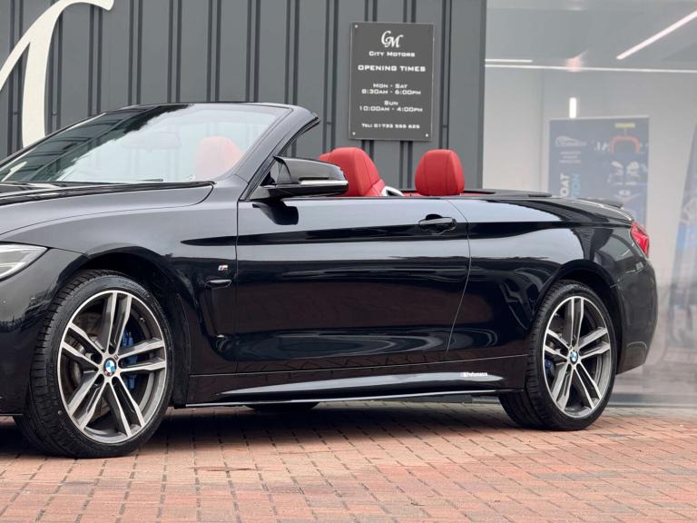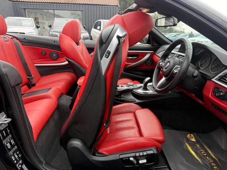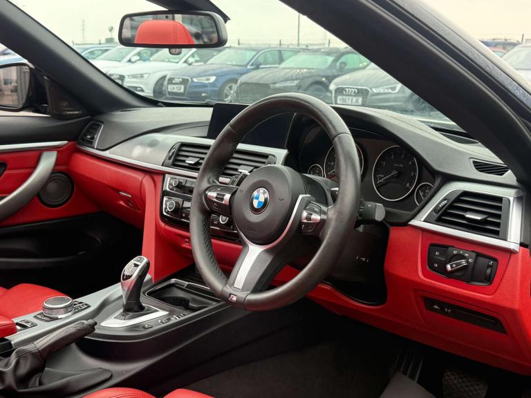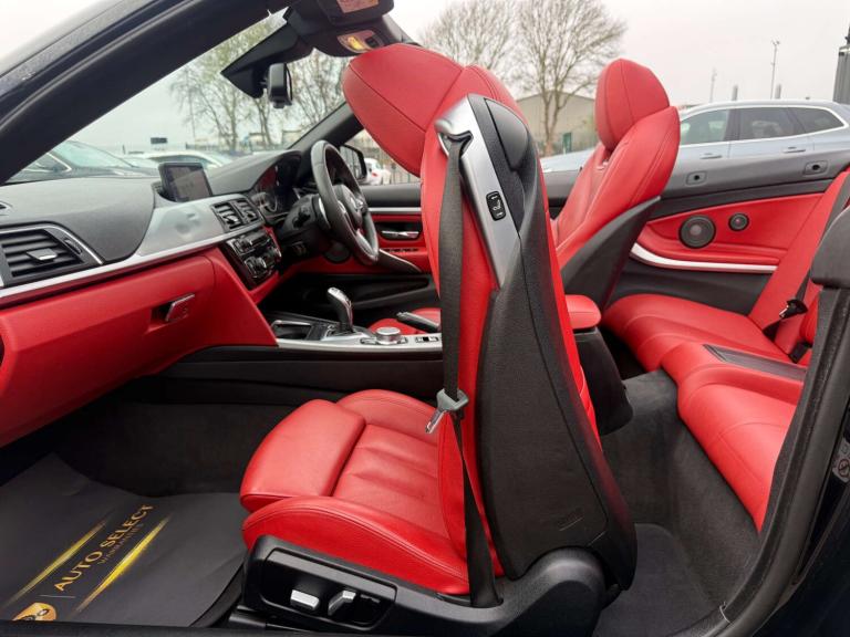 Introducing the Bmw 4 Series 3.0 435D xDrive M Sport Auto 4WD 2dr – a masterpiece of engineering and luxury that promises to elevate your driving experience to unparalleled heights. With just 37,294 miles on the clock and having been cherished by only two previous owners, this stunning vehicle is ready to become your ultimate driving companion. This 4 series has just been freshly serviced and has also had 4 brand new tyres fitted all round!Service History07/11/2025 - 37,594 miles15/09/2023 - 26,410 miles29/10/2021 - 14,116 miles24/03/2021 - 10,977 miles21/01/2020 - 7,369 milesDressed in an elegant Black Sapphire finish, the Bmw 4 Series exudes sophistication and style. Its striking 19-inch Alloy Wheels in M Double Spoke Style 704M with a Bi-Colour Orbit Grey finish add a touch of sportiness to its refined appearance.Step inside and be enveloped by the sumptuous Dakota Leather in Coral Red with Black Highlights, perfectly complemented by a sleek Black Interior. The Aluminium Carbon Trim Finishers with Pearl Chrome Highlight further enhance the cabin's modern aesthetic.This Bmw 4 Series is not just about looks; it's packed with an array of premium features designed to make every journey a pleasure. The Advanced Parking Package, Reversing Assist Camera, and Driver Comfort Package ensure effortless manoeuvrability and peace of mind. Meanwhile, the Comfort Access with Smart Opener and Convertible Comfort Package provide the ultimate in convenience and luxury.Stay connected and entertained with the Enhanced Bluetooth Telephone Preparation with Wireless Charging and WiFi Hotspot Preparation. The Head-Up Display and Speed Limit Display keep you informed and focused on the road ahead, while the Driving Assistant and High-Beam Assistant add an extra layer of safety.Experience the thrill of driving with the M Sport Braking System, Variable Sport Steering, and Dynamic Package, all designed to deliver an exhilarating performance. The M Sport Plus Package and Innovation Package further enhance the vehicle's capabilities, ensuring you enjoy every moment behind the wheel.For those chilly days, the Heated Steering Wheel and Warm Air Collar provide added comfort, while the Exterior Mirrors with Anti Dazzle and Electrically Folding function offer practicality and style.Don't miss the opportunity to own this exceptional Bmw 4 Series. It's more than just a car; it's a statement of luxury, performance, and innovation. Visit us today and experience the allure of the Bmw 4 Series for yourself. Your dream drive awaits.