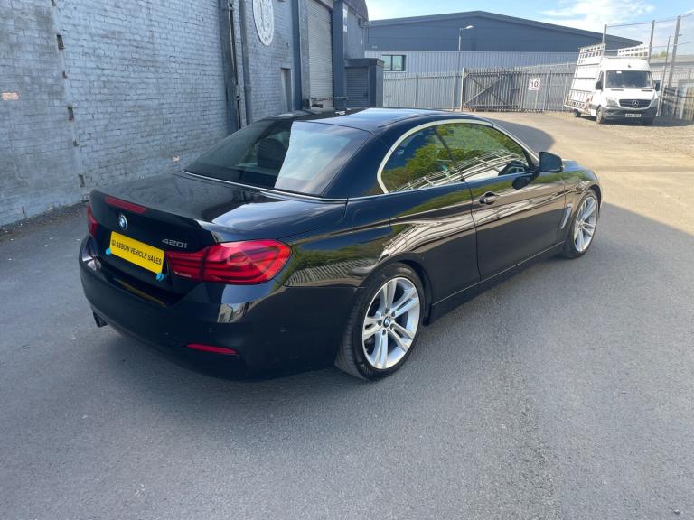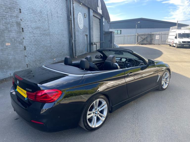BMW 4 SERIES 420i Sport 2dr Auto [Business Media] convertible (ULEZ COMPLIANT 6 MONTHS FREE WARRANTY)this has an mot till 16.04.2027 has service history aircon heated seats auto climate control automatic lights automatic wipers Bluetooth DAB media connectivity radio cd rear parking sensors traction control satnav black leather interior alloys multi function steering wheel electric windows electric heated mirrors NATIONWIDE DEILVERY AVAILABLE, PLEASE CONTACT US FOR MORE INFORMATION.