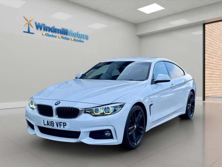HUGE SPEC WITH OPTIONAL EXTRAS! - GOOD SERVICE HISTORY / MOT FEB 2027 - AUTO - ULEZ - M SPORT PLUS PACK, HARMAN KARDON SOUND, 19'' BLACK ALLOYS, COMFORT PACK, PRO NAVIGATION AND MEDIA PACK, M SPORT BRAKING, POWER FOLD MIRRORS, ANTI DAZZLE, COMFORT ACCESS KEYLESS ENTRY, HIGH BEAM ASSISTANT, CRUISE CONTROL, FRONT AND REAR PARKING SENSORS, BLUETOOTH, DAB RADIO, USB PORT, AIR CON, CLIMATE CONTROL, AUTO LIGHTS/WIPERS, PRIVACY GLASS AND MUCH MORE! - GOOD SERVICE HISTORY - LAST SERVICED AT 83K MILES - MOT FEB 2027 - FREE 3 MONTHS NATIONWIDE PREMIUM WARRANTY COVER INCLUDED (Extended Warranty Available) - 2X SETS OF KEYS - BOOK PACK/OWNERS MANUALS INCLUDED - HPI CHECKED AND CLEAR -Boasting an MOT valid until February 2027, this 2018 BMW 4 Series Gran Coupe 430d M Sport offers excellent peace of mind. This Euro 6 compliant diesel model, with its powerful 3.0 litre engine, has a recorded last service mileage of 83,000 miles and comes with a 3 month warranty. The M Sport trim enhances its already impressive styling and driving dynamics, while the Harman Kardon loudspeaker system ensures an exceptional audio experience.Experience superior comfort with the Driver Comfort Package, featuring keyless entry and memory seats, complemented by the Comfort Access with Smart Opener. Automatic headlights, activated by the rain sensor, and heated seats for the driver and front passenger add to the convenience. This Gran Coupe also stands out with its generous boot space, making it practical for everyday use. Furthermore, its impressive 0-62mph acceleration in just 5.6 seconds demonstrates its dynamic performance, and it benefits from a low insurance group, making it a more economical choice compared to similar vehicles.