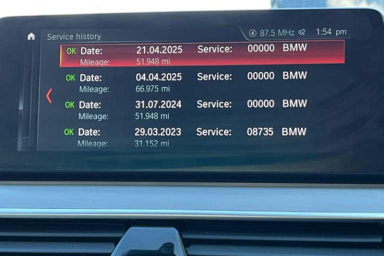 20GB hard disc drive (HDD) memory, Active Guard incl speed limiting and lane departure functions with auto steering, and front collision warning with brake intervention, Average speed gauge, BMW Live Cockpit Professional sat nav system including 10.25 high resolution display and Intelligent Voice Assistant, BMW Online services, BMW remote services, BMW Teleservices, Brake force display, Control display - 10.25 colour touch sensitive display screen, Fuel consumption and range, iDrive touch controller with shortcut buttons, Journey computer, Multifunctional instrument panel, Navigation System Professional Multimedia, Oil sensor for level and grade, On board computer, On-board diagnosis - OBD, Outside temperature display, Personal Profile, Real time traffic information, Service interval indicator, Speed limiting function, Voice control system, Acoustic glazing, Active air stream kidney grille, All round anti-corrosion system, Auto dimming rear view mirror, Body colour door handles, Body coloured bumpers, Body coloured door mirrors, Body coloured side sills, Door handle illumination, Dynamic brake lights with LED technology, Electric front and rear windows with fingertip open/close + anti-trap facility and comfort closing function, Electrically adjustable and heated exterior mirrors includes integrated direction indicators, Follow me home headlights, Heated windscreen washer jets, Interior rear view electrochromatic mirror with automatic anti dazzle function, LED daytime running