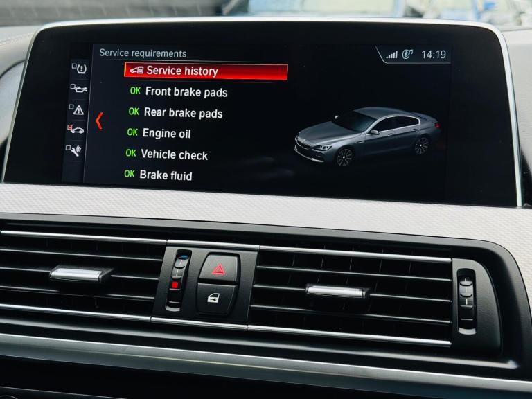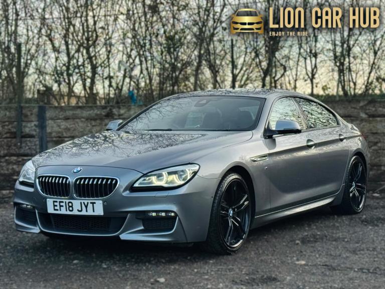 We are proud to present you this beautiful high spec BMW 6 Series Gran Coupe M Sport with adaptive suspension, fresh service and in great condition both mechanically and cosmetically, comes with a fresh service, free 12-month MOT upon request, 6 Months Nationwide warranty parts & labour. SPEC Harmon/Kardon Sound system, Digital cockpit, heads up display, high beam assist, heated seats, auto folding mirrors, Reverse and 360* cameras, 20 inch alloy wheels, Gearshift paddles, enhanced Telephone preparation, Navigation, Bluetooth, AUX, CD player, FM/AM Radio, USB, front and rear parking sensors, different driving modes: Eco pro, comfort, comfort plus, sport and sport plus, ISOFIX and much more.HISTORY & CONDITION Free 12-month MOT upon request, Free 6-month warranty. It comes with all the paperwork and full service history, serviced at 17K, 23K, 33K, 42K, 54K, 68K, 75K and just serviced at 86,490 miles, 2 previous owners, 2 Keys, HPI Clear. The car is in great condition inside and outside, video of the car also available on our website.FINANCE We also provide finance at competitive rates, give us a call for a free finance quote over the phone, from our panel of over 100 lenders. You can drive away the same day.ABOUT US - We also take all types of part exchanges Video viewing - Nationwide delivery - We take all major cards for payment - As standard all vehicles are supplied with a warranty which covers parts & labour valid nationwide (with an option to extend up to 48 months at an additional cost). We are based in Farnham, GU10 4JX. Please be aware that if you reserve this car on-line via the Autotrader reserve the car may already be sold, as our cars are advertised on many platforms. Auto trader reservation is not linked to our own systems and does not guarantee reservation of the car. Please contact us directly via a phone call, email, or WhatsApp to check the availability of the car and to reserve it.