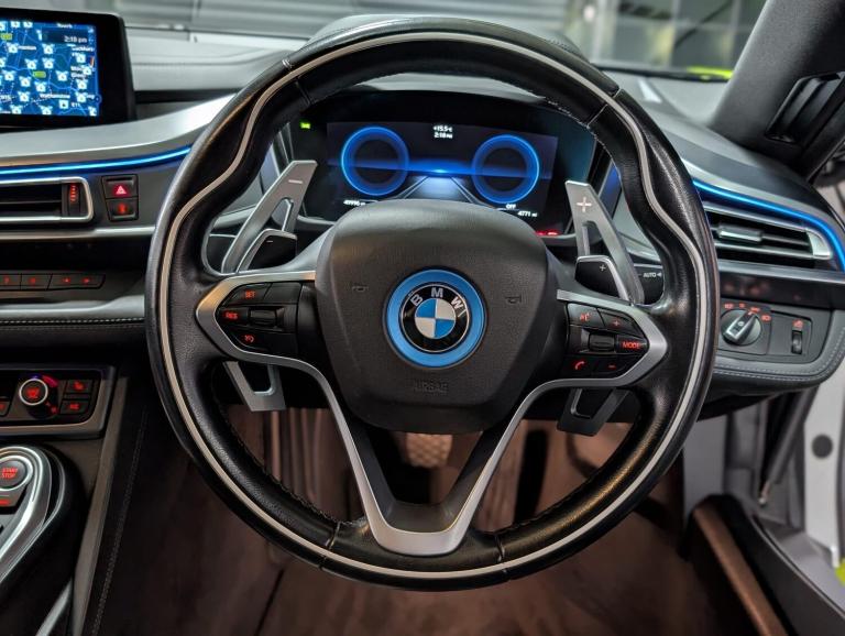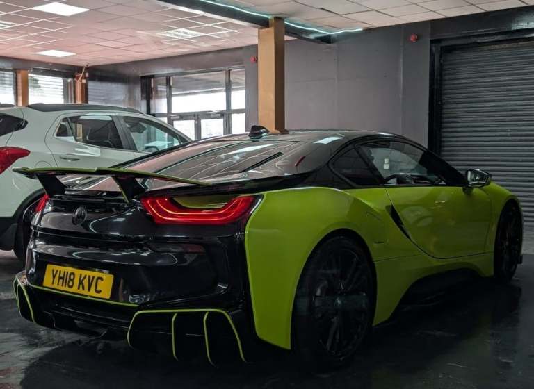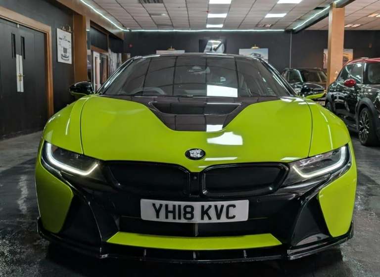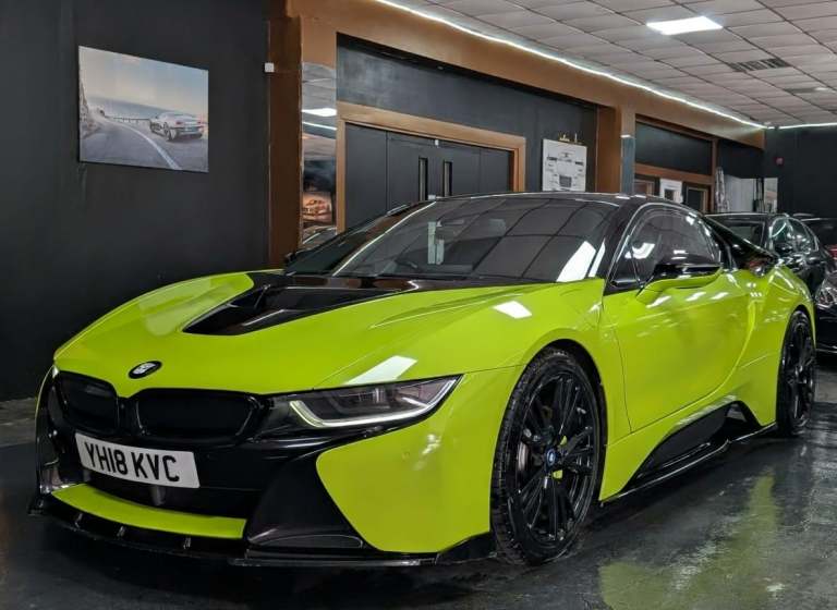 Bmw warranty until March 2026 + Wrapped in lime green. 4 new Tyers. Smart key included. original colour white. This 2018 BMW i8 presents a unique opportunity, having been cherished by only two owners since its registration. It boasts a sophisticated 1.5L petrol plug in hybrid engine, delivering efficient performance with its four wheel drive system and meeting Euro 6 emission standards. Inside, you'll find a host of premium features designed for comfort and convenience, including front seat heating, enhanced Bluetooth telephone preparation with USB audio interface, and an impressive Head Up Display. The Driving Assistant package further enhances the experience, offering surround view with a 360 degree camera, speed limit display, and high beam assistant, all complemented by the immersive Online Entertainment system.The BMW i8 stands out from its peers with its innovative plug in hybrid technology, offering a blend of dynamic driving and environmental consciousness. The inclusion of features like the Head Up Display and the comprehensive Driving Assistant with surround view parking assistance highlights its advanced technological integration, providing a safer and more enjoyable driving experience. This vehicle's combination of low ownership, advanced features, and efficient hybrid powertrain makes it a compelling choice for those seeking a distinctive and forward thinking driving machine.HPI CLEAR... A 90 admin fee applies to all transactions**WE ACCEPT MOST MAJOR BANK CARDS** LOW RATE FINANCE AVAILABLEVIEWING STRICTLY BY APPOINTMENT ONLY...PLEASE CALL TO ENQUIRE AS THERE MAY BE A DELAY IN ANSWERING EMAIL ENQUIRIES