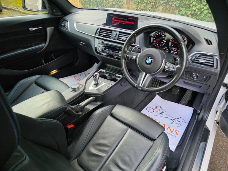 Romans of St Albans are delighted to present to you this BMW M2 which is absolutely immaculate, finished in Alpine White, with Black Dakota Leather and Blue stitching. Most service history is on the iDrive, with the all important "running in" service carried out. Most recent service was done 24.03.2025 @ 37,427 miles and it will come fully serviced by us, for its new owner. It comes with some great optional extras to include: Harman Kardon, Reverse Camera, Electric Folding Mirrors with Anti-Dazzle, Front Electric Seats with Memory Function, Heated Front Seats, and much more. FINANCE AVAILABLE. A £299 admin fee applies to third party finance companies being used. FREE ON-SITE PARKING (ASK FOR DETAILS.)Romans after care package includes: Romans warranty for 6 months (12,24 & 36 months are available), Main dealer cover available, Free breakdown cover for warranty duration, Full Romans service prior to delivery, 84 point vehicle inspection, 12 months MOT, Free Life time MOT when servicing with us (ask for details), Total value of package: £2000 - ALL INCLUSIVE IN THE PRICE. All of our clients have the added peace of mind that we have our own workshop facilities with free courtesy cars. Part Exchange very welcome, nationwide delivery also available. To avoid a wasted journey we highly recommend making an appointment, so call us now to get yours booked! Romans provide the highest of quality vehicles, and have at least 80 cars in stock at any one time. This means not all cars can be kept on site. This will also allow us to give you our fully undivided attention when viewing the vehicle you are interested in, WE ARE LOOKING TO BUY YOUR TOP SPEC, LOW MILEAGE, FULL SERVICE HISTORY PRESTIGE, SPORTS, AND 4X4 VEHICLES. GET MORE FOR YOUR VEHICLE BY EITHER SELLING TO US, OR ASKING US TO SELL YOUR VEHICLE FOR YOU.12V Power Socket - Centre Console, 12V Power Socket - Passenger Footwell, 19in Alloy Wheels - M Double Spoke Style - 437M with Mixed Tyres - Jet Black Forged and Burnished, Active M Differential, Air Conditioning - Automatic with Two-Zone Control, Airbags, Airblades - Ferric Grey, Alarm System - Thatcham 1 with Remote Control and Engine Immobiliser, Ambient Lighting - Switchable, Armrest - Front with Sliding Adjustment, Automatically Dimming Rear View Mirror, BMW ConnectedDrive Online Services, BMW ConnectedDrive Services, BMW Emergency Call, BMW Mobility System, BMW Professional Radio with Single CD Player - with MP3 Playback Compatibility, BMW TeleServices, Battery Age Recognition Function, Battery Safety Cut Off, Bluetooth Hands-Free Facility with USB Audio Interface and Audio Streaming, Brake Pad Wear Indicator, Bumper System - Front and Rear, Central Locking Switch - Doors - Fuel Filler Cap - Luggage Compartment, Check Control Warning System for Monitoring of Lights and Door-Luggage Compartment Open Warning, Child Seat ISOFIX Attachment for the Two Outer Rear Seats, Coat Hooks - Integrated into Rear of B Pillar, Condition Based Service, Crash Sensor, Cruise Control with Brake Function, Cup Holders x2 with Sliding Cover and Inlay Mat, DAB Digital Radio, DSC - Dynamic Stability Control Plus, Daytime Driving Lights, Direction Indicator - Side Repeaters - Integrated in Exterior Mirrors, Direction Indicator Lights - Clear Lenses, Door Sill Finishers - M2 Designation, Drive Performance Control - ECO PRO - Comfort - Sport - Sport Plus, Dynamic Brake Lights, ECO PRO Mode, EPS - Electric Power Steering, Electric Windows - Front and Rear with Open-Close Fingertip Control - Anti-Trap Facility and Comfort Closing Function, Engine Cover with BMW Roundel and TwinPower Turbo Designation, Exhaust Tailpipe - Twin Dual - Chrome, Extended Lighting, Extended Storage, Exterior Mirrors Electrically Adjustable, Exterior Parts in Body Colour, Exterior Trim - High-Gloss Shadowline, First Aid Kit and Warning Triangle, Floor Mats - Velour, Full Black Panel Display, Gearshift Lever with M Designation - Short-Shift, Glove Box, Handbrake Lever and Gear Lever in Leather, Headlining - Anthracite, Heat Protection Glazing with Green Tint, High Level Third Brake Light, Instrument Cluster, Interior Comfort Package, Interior Lighting - Front Centre Over Interior Mirror and Rear Centre, Interior Trim - Carbon Fibre with Black High Gloss Finishers, Kidney Grille - Chrome with Double Black