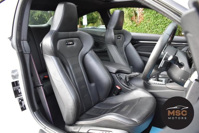 This M4 is in fantastic condition for it’s age and mileage and it’s also got a brilliant service history with a total of nine inputs on the I-Drive which also includes the all important running in service. This M4 is quite a rare specification with the opening sun-roof being an option that we’ve never had before on an M4! It’s also got the ‘surround view’ which gives you the reverse camera and cameras in each side of the front bumper which combined with the front and rear parking sensors make it incredibly easy to park. It’s got the LED adaptive headlights which don’t just light the road up better they also look gorgeous. It’s got heated front seats which are electrically adjustable and the drivers has the memory function, on longer motorway journeys the cruise control is a fantastic feature and with it having pro-nav you’ve got built in Sat-Nav, DAB radio, Bluetooth for both audio and calls and USB connectivity. It has both of its original keys with it, it has MOT until 24/09/2026 which it passed with no advisories and all of our retail cars come with a warranty which you can extend if you wish to, part exchanges are welcome and low rate finance with no deposit options are available, we can also supply and fit ghost immobilisers. If you have any questions at all then please don’t hesitate to contact us.