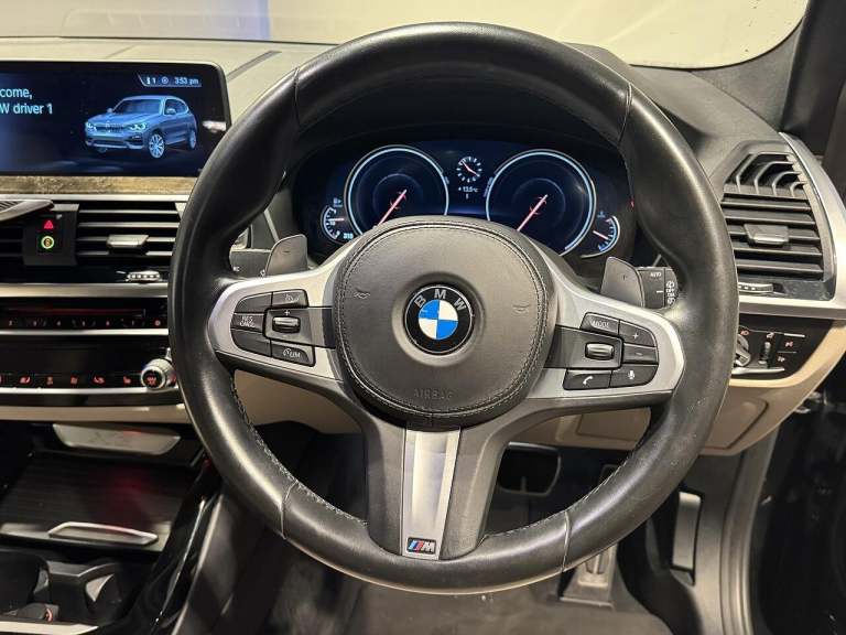 This beautifully presented BMW X3 M Sport is finished in Black Sapphire metallic, perfectly complemented by striking 21-inch alloy wheels for a commanding and stylish presence. Inside, the cabin is finished to an exceptional standard with Oyster leather seats and elegant fine wood inlays, creating a refined and contemporary driving environment.Maintained to the highest standard with a full service history and supplied with two keys, this X3 is loaded with desirable features. The M Sport Plus Pack adds a dynamic edge, while adaptive suspension ensures a smooth yet engaging drive. Comfort is first class with front and rear heated seats, electric folding wing mirrors, and a Harman Kardon sound system delivering premium audio quality.Everyday convenience is well catered for, including a digital dash, automatic headlights, cruise control, and front and rear parking sensors for effortless manoeuvring.This outstanding example blends performance, comfort, and practicality in true BMW style. UK delivery is available, and flexible finance options are available for all credit types starting from 11.6% APR, making it easier than ever to drive away in this superb X3.
