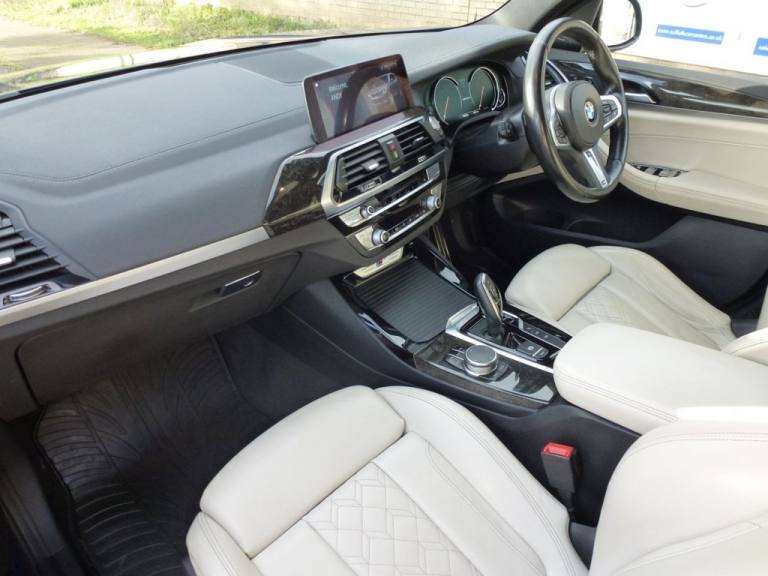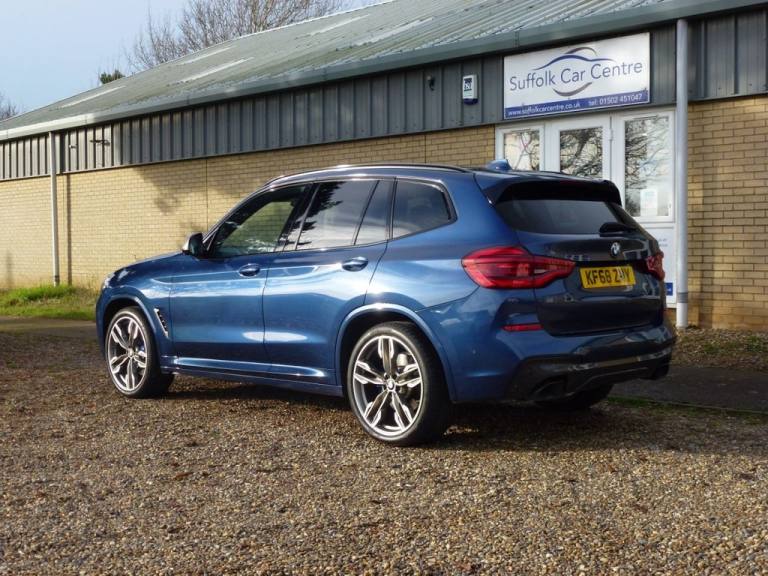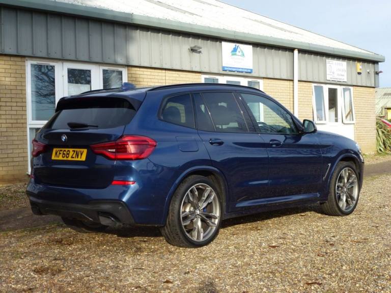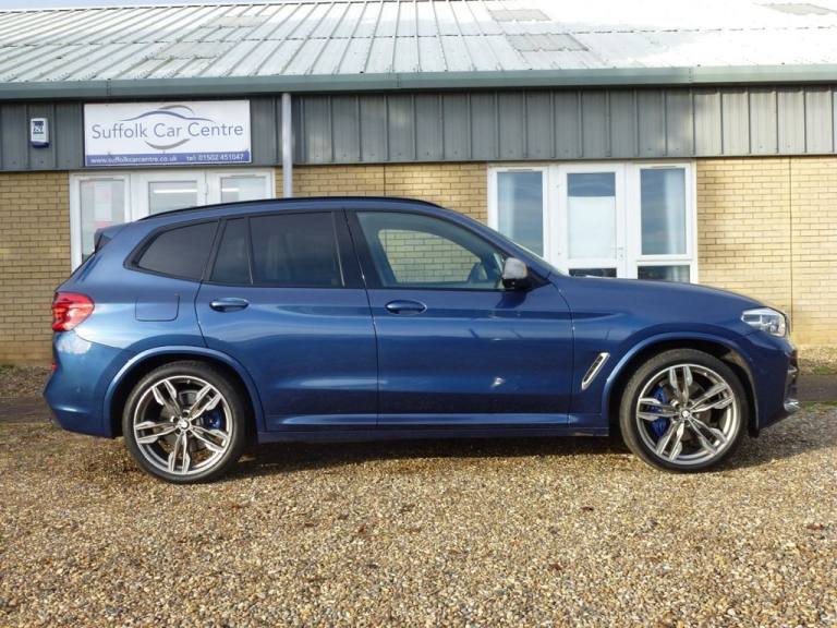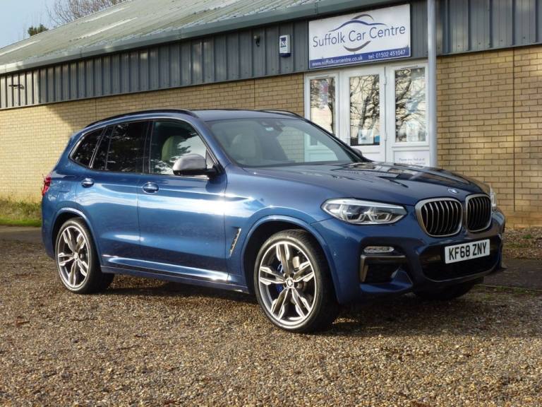 BMW X3 3.0 M40d SUV 5dr Diesel Auto xDrive Euro 6 (s/s) (326 ps) Service History and 12 Months MOT 6 Months Blue Chip Warranty Roadside Assistance (Optional) Located at Reydon.Detachable Tow Bar, BMW ConnectedDrive Online Services, Bluetooth Hands Free with USB Audio , DAB Digital Radio, Cruise Control with Brake & Speed Limit, Detachable Tow Bar, Detatchable Tow Bar, 12V Power Socket in Front Centre Console, 20in Alloy Wheels - Bi-Colour Orbit Grey M Light Double Spoke Style 699 M with Run-Flat Tyres, Active Guard, Air Conditioning - Automatic, Airbags, Alarm System - Thatcham 1 with Remote Control and Engine Immobiliser, Ambient Lighting, Armrest - Front with Storage Compartment, Armrest - Rear Centre with Two Cupholders, Attentiveness Assistant, BMW ConnectedDrive Online Services, BMW Emergency Call, BMW Icon Adaptive LED Headlights, BMW Professional Navigation with 10.25in Touch Display, BMW TeleServices, Battery Safety Cut Off, Bluetooth Hands Free with USB Audio Interface, Bottle Holders Integrated into Door Trim Storage Compartments - Front - up to 1 litre - Rear - Up to 750ml, Brake Pad Wear Indicator - Front and Rear, Bumper System Front and Rear - Replaceable Deformation Elements for Impacts Up to 9mph, Central Locking Switch - Doors - Fuel Filler Cap - Luggage Compartment, Check Control Warning System for Monitoring of Lights and Door-Luggage Compartment Open Warning, Child Locking System - Rear Doors, Child Seat ISOFIX Attachment - Rear, Condition Based Service, Crash Sensor, Cruise Control with Brake and Speed Limiting Function, Cup Holders - Front - Two with Removable Oddments Tray-Lid, DAB Digital Radio, DSC - Dynamic Stability Control Plus, Digital Cockpit, Direction Indicator - Side Repeaters - Integrated in Exterior Mirrors, Door Sill Finishers - Front - High-Gloss Black with BMW Designation, Drive Performance Control with ECO PRO - Comfort and Sport Modes, Dynamic Brake Lights, EPS - Electric Power Steering, Electric Windows - Front and Rear with Open-Close Fingertip Control - Anti-Trap Facility and Comfort Closing Function, Electro Mechanical Parking Brake, Exhaust Tailpipes - Dual - Black Chrome Exhaust Tips - Quadrilateral, Exterior Air Inlets - Mirror Caps and Air Breather in Cerium Grey, Exterior B Pillar - Black, Exterior Mirrors Electrically Adjustable, Exterior Parts in Body Colour, Exterior Trim - High-Gloss Shadowline, First Aid Kit and Warning Triangle, Gear Knob - Leather, Grab Handles - Integrated in Roof Lining x4, Headlining - Anthracite, Heat Protection Glazing with Green Tint, Heated Windscreen Washer Jets, High Level Third Brake Light Using LED Technology, High-Beam Assistant, Incorrect F