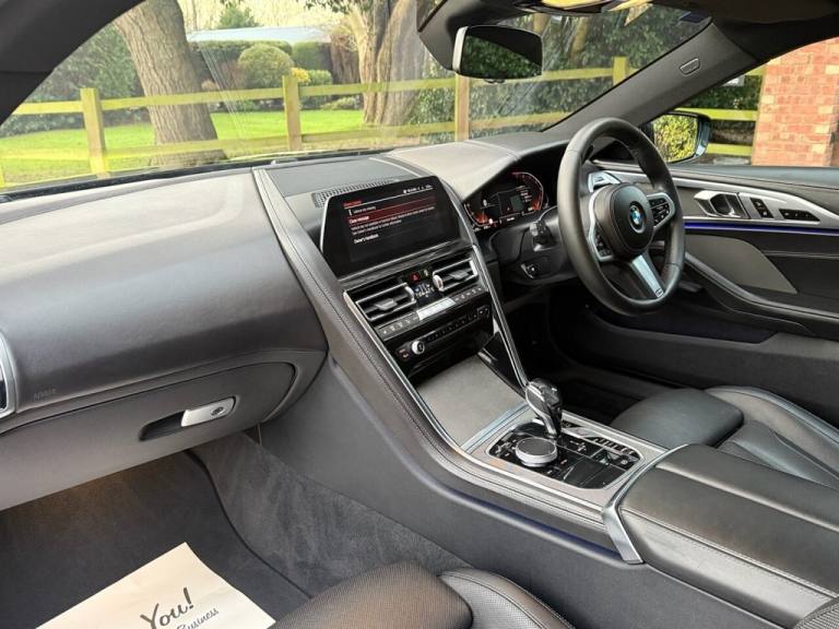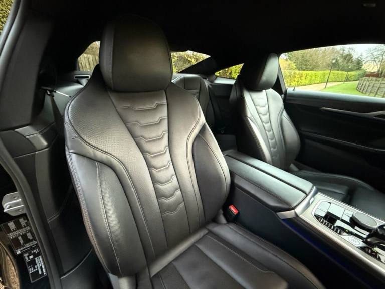 This BMW 8 Series 840i offers excellent peace of mind with its MOT valid until September 2026 and a clear vehicle history check. Under the bonnet, youll find a powerful 3.0 litre petrol engine, meeting Euro 6 emission standards. This sophisticated model comes equipped with striking 20 inch M Light Y-spoke 728M Jet Black alloy wheels featuring run-flat tyres and mixed tyre sizes. Convenience is key with the Comfort Access System, allowing for keyless entry, while the Head-Up Display projects vital information directly into your line of sight. Inside, enjoy the dual-zone automatic climate control and stay connected with enhanced Bluetooth, including wireless phone charging. The BMW 8 Series 840i stands out with its low CO2 emissions, indicating a more environmentally conscious choice compared to many vehicles in its class. Furthermore, its low insurance group rating suggests that running costs could be more affordable than you might expect for a car of this calibre. These factors, combined with its impressive features and strong provenance, make this 840i a compelling option for those seeking a premium driving experience..20in Alloy Wheels - M Light Y-Spoke 728M, BMW Individual Extended Merino Leather -, Harman Kardon Surround Audio Sound, Black pack , Head-Up Display , 12V Power Socket - Front x2, BMW Individual Extended Merino Leather - Black-Black, 20in Alloy Wheels - M Light Y-Spoke 728M Bicolour with Run-Flat Tyres and Mixed Tyres, ABS - Anti Lock Braking System, Active Guard, Active Protection, Adaptive M Suspension, Air Conditioning Automatic with Two-Zone Control, Airbags, Alarm System - Thatcham 1 with Remote Control and Engine Immobiliser, Ambient Interior Lighting - Dynamic, Armrests, BMW ConnectedDrive Online Services, BMW ConnectedDrive Professional, BMW Display Key, BMW Icon Adaptive LED Headlights, BMW Individual Headliner - Anthracite, BMW Legal Emergency Call, BMW Live Cockpit Professional, BMW TeleServices, Bluetooth Hands Free with USB Audio Interface and Voice Control, Brake Pad Wear Indicator, Carbon Core - Innovative Lightweight Construction with Highly Rigid and Light Carbon Elements, Central Locking Switch, Check Control Warning System, Child Seat ISOFIX Attachment - Rear, Climate Comfort Windscreen, Closing System with Central Locking, Comfort Access System, Condition Based Service, Crash Sensor, Cruise Control with Brake Function, Cup Holders - Front x2, DAB Digital Radio, DSC - Dynamic Stability Control - Stabilises the Vehicle in Extreme Situations - Controls Traction, DTC - Dynamic Traction Control, Double-Wishbone Front Axle, Drive Experience Control with Sport - Comfort - Eco - Pro and Adaptive Modes, Dynamic Brake Lights, Dynamic Damper Control, Electric Windows - Front, Electro-Mechanical Parking Brake with Auto-Hold Function, Enhanced Bluetooth with Wireless Charging, Entry Lights - Front Doors, Exhaust Tailpipe - Finisher in Chrome, Exterior Door Handle Illumination, Exterior Mirror Housing - Upper Section in Body Colour with Lower Section in Black, Exterior Mirrors - Folding - Heated - Electrically Adjustable, Exterior Trim - High Gloss Shadowline, Favourite Buttons, First Aid Kit and Warning Triangle, Floor Mats - Velour, Follow Me Home Headlight Function, Front and Rear Bumper System with Replaceable Deformation Elements, Glove Compartment - Lockable with Light, Head-Up Display, Headlining - M Anthracite, Headrests - Active Front, High Level Third Brake Light Using LED Technology, High-Beam Assistant, Instrument and Upper Door Panels - Leather-Trimmed Walknappa Leather, Integrated Owners Handbook, Interior Mirror - Frameless, Interior T
