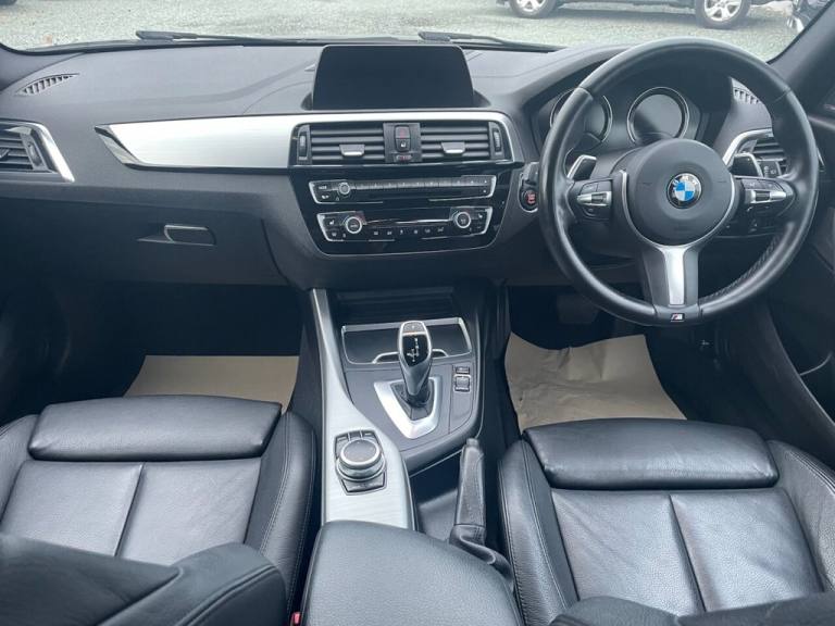 WELL PRESENTED BMW 125D M SPORT SHADOW EDITION AUTOMATIC IN BLACK, 2 KEYS, EXCELLENT SERVICE HISTORY WITH 6 RECORDED SERVICES, MOST RECENT SERVICE DONE AT CURRENT MILEAGE, EXCELLENT SPECIFICATION INCLUDING FULL LEATHER INTERIOR WITH FRONT SPORTS SEATS, HEATED FRONT SEATS, BMW NIVATION & MEDIA SYSTEM WITH BLUETOOTH HANDS-FREE, PREMIUM HARMAN KARDON SOUND SYSTEM, AUX/USB CONNECTIONS, DAB RADIO, BMW CONNECTED DRIVE SERVICES, REAL TIME TRAFIC INFORMATION, REAR PARKING SENSORS, CRUISE CONTROL, DRIVE PERFORMANCE CONTROL WITH ECO PRO-COMFORT-SPORT MODES, LED HEADLIGHTS, AUTO AIR CON, M AERODYNAMICS BODY-STYLING, HIGH GLOSS SHADOW-LINE EXTERIOR TRIMS, 18in ALLOY WHEELS East Midlands Car Centre is A family business you can trust. We have built our reputation based on the quality of cars we supply and the outstanding customer service we deliver. Here at East Midlands Car Centre We are extremely passionate about what we do, we endeavour to ensure all our customers have a warm family friendly experience whilst choosing the right vehicle and receiving great value for money. HPI clear. Part exchange welcome. Open late by appointment. Extended warranties available up to three years. Finance Available NO deposit required. All vehicles inspected and serviced by Lutterworth Ford. Any further information or viewing please contact us on 01455 203659 or [Phone number removed] Nationwide home delivery service available. All specification data above provided by third party source, we accept no liability for errors in this advert, please call the sales team to confirm any of the details above. .12V Power Socket - Centre Console, 12V Power Socket - Passenger Footwell, 18in Alloy Wheels - M Double Spoke - 719M Bicolour Jet Black, 18in Alloy Wheels - M Double Spoke - 719M Jet Black, Active Differential Brake - ADB Sport - Electronic Differential Lock in DSC-Off Mode, Air Conditioning - Automatic - Single Zone, Airbags, Alarm System - Thatcham 1 with Remote Control and Engine Immobiliser, Ambient Lighting - Switchable BMW Classic Orange - Cold White - LED, Armrest - Front with Sliding Adjustment, Automatically Dimming Rear View Mirror, Battery Age Recognition Function, Battery Safety Cut Off, Black High-Gloss Kidney Grille Frame with Black Slats, Black Sapphire, Bluetooth Hands Free with USB Audio Interface, BMW ConnectedDrive Online Services, BMW ConnectedDrive Services, BMW Emergency Call, BMW Navigation System, BMW Professional Radio - Single CD and MP3, BMW TeleServices, Brake Pad Wear Indicator - Front and Rear, Bumper System Front and Rear - Replaceable Deformation Elements for Impacts Up to 9mph, Central Locking Switch - Doors - Fuel Filler Cap - Luggage Compartment, Check Control Warning System for Monitoring of Lights and Door-Luggage Compartment Open Warning, Child Proof Locking System - Rear Doors, Child Seat ISOFIX Attachment for the Two Outer Rear Seats, Condition Based Service, Crash Sensor - Activating Central Locking Release - Hazard Warning Lights - Battery Safety Cut Off - Interior Lighting, Cruise Control with Brake Function, Cupholders Two with Sliding Cover and Inlay Mat, DAB Digital Radio, Dakota Leather - Black with Black Interior, Darkened Rear Lights with LED Light Bars, Direction Indicator - Side Repeaters - Integrated in Exterior Mirrors, Direction Indicator Lights - Clear Lenses, Door Sill Finishers - M Designation, Drive Performance Control with ECO PRO - Comfort and Sport Modes, DSC - Dynamic Stability Control Plus, Dynamic Brake Lights, ECO PRO Mode, Electric Windows - Front and Rear with Open-Close Fingertip Control - Anti-Trap Facility and Comfort Closing Function, EPS - Electric Power Steering, Exhaust Tailpipes - Dark Chrome, Extended Lighting, Extended Storage, Exterior Mirrors Electrically Adjustable, Exterior Parts in Body Colour, Exterior Trim - High Gloss Shadowline, First Aid Kit and Warning Triangle, Floor Mats - Velour, Glove Compartment, Glovebox - Handle with Chrome Surround, Grab Handles - Integrated in Roof Linings - Four, Handbrake and Gear Knob - Leather, Head Restraints - Rear and Folding, Headlining
