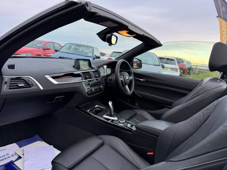 This 2019 BMW 2 Series 218d M Sport is presented with a clear vehicle history check, offering peace of mind for its next owner. This stylish coupe features a responsive 2.0L diesel engine, meeting Euro 6 emissions standards. Inside, youll find the M Sport trim enhanced by Dakota Leather upholstery in Black with exclusive stitching, providing a premium feel. Practicality is also catered for with rear Park Distance Control and a rain sensor that automatically activates the LED headlights, which themselves offer excellent visibility. The cabin comfort is further assured by single zone automatic air conditioning. The M Sport designation signifies a sportier driving experience, and this 218d variant is no exception. Its inclusion in a low insurance group makes it an attractive and cost effective choice for many drivers, indicating it offers excellent value compared to similar vehicles. This BMW 2 Series combines its dynamic styling with efficient diesel performance and a host of desirable features, making it a well rounded option for those seeking a premium compact coupe..12V Power Socket - Centre Console, 12V Power Socket - Passenger Footwell, 18in Alloy Wheels - M Light Double-Spoke Style 719 M Bicolour Jet Black, Access to BMW Connected Plus (12 Month Subscription From New), Acoustic Soft-Top in Anthracite, Active Differential Brake - ADB Sport - Electronic Differential Lock in DSC-Off Mode, Air Conditioning - Automatic - Single Zone, Airbags, Alarm System - Thatcham 1 with Remote Control and Engine Immobiliser, Ambient Lighting - Switchable, Armrest - Front with Sliding Adjustment, Automatically Dimming Rear View Mirror, BMW ConnectedDrive Online Services, BMW Emergency Call, BMW Navigation, BMW Professional Radio with Single CD Player - with MP3 Playback Compatibility, BMW TeleServices, Battery Age Recognition Function, Battery Safety Cut Off, Bluetooth Hands-Free Facility with USB Audio Interface and Audio Streaming, Brake Pad Wear Indicator - Front and Rear, Bumper System - Front and Rear, Central Locking Switch - Doors - Fuel Filler Cap - Luggage Compartment, Check Control Warning System for Monitoring of Lights and Door-Luggage Compartment Open Warning, Child Seat ISOFIX Attachment for the Two Outer Rear Seats, Condition Based Service, Crash Sensor, Cup Holders x2 with Inlay Mat, DAB Digital Radio, DSC - Dynamic Stability Control Plus, Darkened Tail Lights with LED Light Bars, Daytime Driving Lights, Direction Indicator - Side Repeaters - Integrated in Exterior Mirrors, Direction Indicator Lights - Clear Lenses, Door Sill Finishers - M Designation, Drive Performance Control - ECO PRO - Comfort - Sport - Sport Plus, Dynamic Brake Lights, EPS - Electric Power Steering, Electric Windows - Front and Rear with Open-Close Fingertip Control - Anti-Trap Facility and Comfort Closing Function, Exhaust Tailpipe - Chrome - Single - Round - Left, Exterior Mirrors Electrically Adjustable, Exterior Parts in Body Colour, Exterior Trim - High-Gloss Shadowline, First Aid Kit and Warning Triangle, Floor Mats - Velour, Full Black Panel Display, Glove Box Handle with Chrome Surround and Key Lock, Handbrake Lever and Gear Lever Knob in Leather, Heat Protection Glazing with Green Tint, High Level Third Brake Light, Incorrect Fuelling Protection System, Instrument Cluster, Instrument Panel with Decorative Stitching Line, Interior Lighting - Front Centre Over Interior Mirror and Rear Centre, Interior Trim - Aluminium Hexagon Trim Finishers with Estoril Blue Matt Highlight, Kidney Grille - Chrome Extra-Wide Eight High-Gloss Black Vertical S