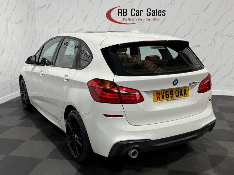 Welcome to AB Car Sales – Your 5-Star Rated Used Vehicle Specialist in CornwallAt AB Car Sales, we take pride in offering a premium selection of quality used vehicles, all prepared to the highest standards. Every car we sell comes with a new or long MOT and is serviced if required for your peace of mind.Where possible, we supply each vehicle with two keys and, if not a full service history, then a comprehensive one to ensure you know exactly what you’re buying.Interested in a vehicle? We’re happy to offer live video viewings via FaceTime or WhatsApp so you can see the car in detail from the comfort of your own home. Our team will walk you through its condition and answer any questions to ensure you’re completely satisfied before making a purchase or placing a deposit over the phone.As finance specialists, we can help you secure competitive finance options, with same-day drive-away finance available.We also offer:Evening appointments in our indoor showroom.Nationwide delivery at a reasonable rate.Let us help make your car buying experience as smooth and convenient as possible.Discover this 2019 BMW 2 Series Active Tourer 225xe M Sport, a premium plug in hybrid that offers an exceptional driving experience. This Euro 6 compliant model boasts a 1.5 litre petrol plug in hybrid engine paired with four wheel drive, ensuring efficient power delivery and confident handling in all conditions. The M Sport trim enhances its sporty appeal, while the inclusion of a Loudspeaker System by Harman Kardon, Bluetooth hands free with USB audio interface, and automatic two zone climate control provide a comfortable and connected cabin.