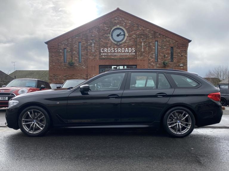 Crossroads Garage are delighted to offer another superb used vehicle; this one owner BMW 520d M Sport Touring Auto which has just arrived in stock with us. COLOUR & TRIM - Presented in the highly desirable colour Sapphire Black BMW metallic paintwork with 18"" Light M-Double Spoke alloy wheels. The interior is finished in Black Dakota Full Leather upholstery with heated, electric front seats. SOURCE - This premium BMW 5 Series was purchased by us directly from it's one previous keeper. SERVICING - Our example has covered just 47000 miles and is provided with a Full BMW Service History. It is of-course HPI clear and the mileage has been verified with VOSA records. We will supply this 520d Touring with a fresh 12 Months MOT with no advisories. PERFORMANCE - This BMW looks and drives superb. Having been put through our multi-point check this car is supplied with our comprehensive parts and labour warranty. SPECIFICATION - Our well-equipped example has an extensive specification which includes, 8-Speed Automatic Gearbox With Paddleshift, BMW Digital Cockpit, BMW Professional Satellite Navigation With Widescreen Touch Display Screen, Electric Front Seats, Heated Front Seats, Front & Rear Parking Sensors With Optical Display, Power Tailgate, LED Headlights, Ambient Lighting, Driving Performance Control Modes, Dual-Zone Climate Control, Bluetooth Phone With Audio Streaming, Cruise Control, Multi-Function Steering Wheel, USB Input, DAB Radio, Acoustic Glazing, Electric Door Mirrors, and more besides. WHAT TO EXPECT FROM US - Fabulous finance packages and the comfort of knowing your car is being supplied by a multi award-winning dealer including Trading Standards Retailer of the Year and we have customer feedback scores to be proud of. All of our vehicles are prepared to a high standard by our team of skilled technicians and will be valeted ready for collection. We take pride in our efforts to make this the most enjoyable car-buying experience you'll ever have. Please call and speak to James, Alan, Dean or Simon who'll be able to answer any questions you have, to reserve this wonderful example today or to book a viewing. Please remember to bring a valid Full Driving Licence with you. Thank You.
