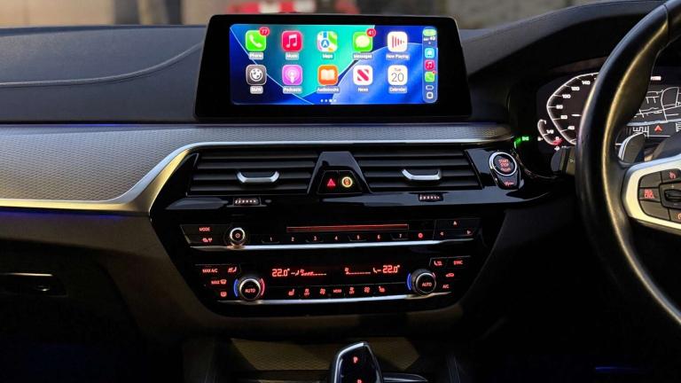 BMW 520i M Sport Performance & Drivetrain2.0 petrol engine (EU6 RDE compliant)Automatic transmission with gearshift paddlesM Sport suspensionRunflat tyresTyre pressure monitoringExterior & StylingM Sport PackageM Aerodynamics PackageM Rear Spoiler20” BMW Individual Light Alloy Wheels V-Spoke Style 759iHigh-gloss Shadow Line exterior trimSun protection glazingInterior & ComfortSport seats for driver and front passengerLumbar support for driver and front passengerHeated front seatsSensatec instrument panelAluminium Rhombicle interior trim with pearl chrome highlightsAmbient interior lightingAnthracite roof liningAutomatic air conditioningThrough-loading systemFloor matsTechnology & InfotainmentNavigation System ProfessionalDAB digital radioHarman Kardon surround sound systemMultifunctional digital instrument displayBMW ConnectedDrive ServicesReal Time Traffic InformationRemote ServicesIntelligent Emergency CallTeleservicesDriver Assistance & SafetyPark Distance Control (PDC)Active GuardAlarm systemExpanded exterior mirror packageActive pedestrian protectionAnti-theft systemAdditional FeaturesM Leather steering wheelLocking wheel boltsWarning triangle