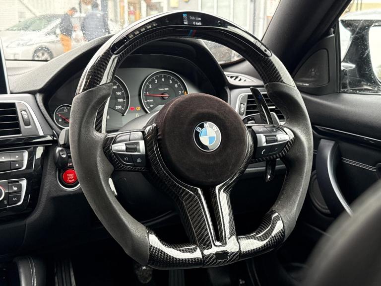 This 2019 BMW M4 BiTurbo Competition is a rare find with an exceptionally low mileage of just 25,000 miles, having been cherished by only two owners. Powered by a potent 3.0 litre petrol engine, this Euro 6 compliant model delivers exhilarating performance. Inside, you'll appreciate the premium Harman Kardon loudspeaker system for an immersive audio experience, while the rain sensor with automatic headlight activation ensures convenience and safety. The front seats offer electric adjustment with driver memory, and the advanced LED headlights provide excellent visibility. Manoeuvring is made effortless with front and rear Park Distance Control.The M4 Competition stands out with its impressive acceleration, reaching 0-62mph in a mere 4.0 seconds, a testament to its dynamic capabilities. This performance, combined with its low insurance group and generous boot space, positions it favourably against other vehicles in its class. These attributes highlight the exceptional value and driving pleasure this particular M4 offers.