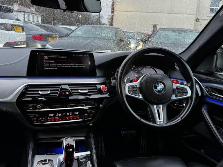 TF Car Centre are delighted to offer this stunning BMW M5 4.4 V8 Steptronic xDrive finished in , coming with Full BMW Service History and sitting on the 20'' alloys. This M5 comes with 7740 of optional extras which include ; M Drivers package (2095), Driving assistant plus (1470), Front massage function (795), Front seat ventilation (510), Soft-close doors (435), Ceramic finish for controls (420), Sun protection glass (390), Through-loading system (335), Front & Rear heated seats (325), Dynamic safety (280), Ambient air package (265), BMW display key (235), Steering wheel heating (185). Further specification ; Head up display, Harman Kardon sound system, Revere & 360 degree cameras, Ambient lighting, Electric folding mirrors, Digital cockpit, Rear privacy, DAB radio, Satellite navigation, Auto hold, 2 keys.This vehicle will benefit from a new MOT free from any advisories, oil service if required, pre delivery inspection and a 6 month nationwide warranty with options to extend.To arrange a viewing or for more information please call us on 01257 546 453 or 07985 102848.