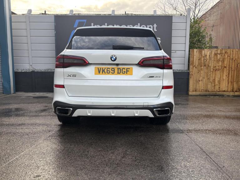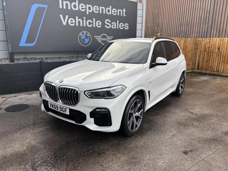 BMW X5 3.0 45e 24kWh M Sport SUV 5dr Petrol Plug-in Hybrid Auto xDrive Euro 6 (s/s) (394 PS)2019 49,000 miles Petrol Plug-in Hybrid Automatic This BMW X5 45e has been meticulously cared for and maintained throughout its life. All our vehicles undergo comprehensive road testing, inspection, and preparation to the highest standards by our on-site BMW-trained technicians before being advertised. You can be confident that your new BMW has been professionally prepared by specialists who know the brand inside out. Key Highlights Recently serviced Prepared to the highest standards Highly rated on Auto Trader Indoor viewing area available Large selection of BMWs in stock – visit our website Finance options available Excellent fuel economy Delivery options available Free delivery within 60 miles Nationwide delivery at competitive rates Factory Options & Specification 21' LA Y-Spoke 741M alloy wheels (run-flat tyres) Locking wheel bolts & tyre pressure display Alarm system Trailer coupling M Shadowline roof rails Velour floor mats Electric seat adjustment with driver memory Heated front seats Travel & Comfort rail system Blow-by heater Acoustic pedestrian protection LED fog lights Active Guard Plus Parking Assistance System Plus DAB tuner Teleservices & eDrive services Connected Package Professional Wireless phone charging BMW Gesture Control M leather steering wheel High-gloss Shadow Line exterior trim Two-axle air suspension M Sport brakes & M Aerodynamics package BMW Display Key Sun protection glazing Sports seats Sensatec instrument panel Aluminium Tetragon interior trim Extended mirror package Ambient interior lighting High-Beam Assist BMW Laserlights Head-Up Display Harman/Kardon surround sound system BMW Drive Recorder BMW Live Cockpit Professional WLAN Hotspot Anthracite headlining Vernasca leather in Black with brown stitching Warning triangle & first-aid kit Euro 6 emissions, RDE compliant 80Ah AGM battery And much more Additional Information For further information or to arrange a viewing, please feel free to contact us. Out-of-hours appointments are available on request. Part-exchange is welcome. We operate a friendly, no-pressure sales approach to ensure you find the right vehicle for your needs. This X5 comes with an exceptionally high specification as listed abo...