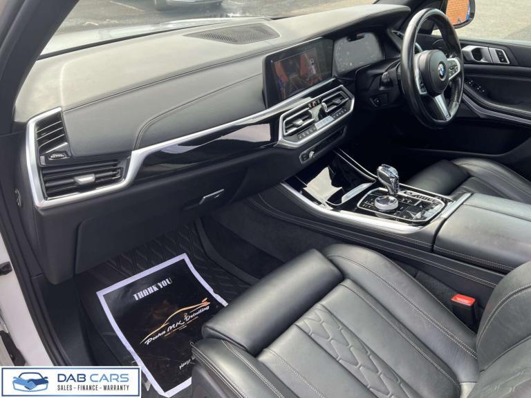 We're pleased to offer this lovely BMW X5 M50D finished in Mineral white. This vehicle comes a very high specification as seen in the photos totalling more than £10,000 from factory. It has been extremely well maintained by BMW main dealerships only and drives as though it has done half its miles. No expense has been spared on this vehicle and a real credit to its previous owner. This vehicle is ready to drive away today. 2 keys (one digital key).Please see digital service record below. 10 Kilometres27/08/201928,807 Kilometres15/05/202052,009 Kilometres14/12/202072,879 Kilometres14/07/202196,074 Kilometres06/06/2022104,253 Kilometres24/08/2022120,184 Kilometres15/03/2023135,892 Kilometres18/10/2023143,844 Kilometres15/02/2024155,918 Kilometres19/11/2025Adaptive 2-Axle Air Suspension, BMW Individual Instrument Panel Finished in Leather, Comfort Package, Driving Assistant Professional, Glass Application - Crafted Clarity for Interior Elements, Integral Active Steering, Interior Trim - BMW Individual - Piano Black, Sky Lounge Panoramic Glass Sunroof, Sun Protection Glazing, Technology Package, Visibility Pack, Mineral White, BMW Individual Extended Merino Leather - Black-Black???? HPI Clear – Verified with no outstanding finance or insurance write-off history.???? Fully Inspected – Passed a comprehensive Vehicle Health Check for your peace of mind.????? MOT – Comes with a recent and valid MOT?.???? Finance & PCP – Flexible packages to suit all budgets, regardless of credit history.????? Complimentary Warranty – Free warranty included, with options to extend.????? Part Exchange Welcome – Get a great deal on your current vehicle.???? Contact us today to arrange a viewing, test drive, or to discuss finance options.WE DO NOT CHARGE AN ADMIN FEE IF YOU DECIDE TO FINANCE YOUR NEW CAR WITH ONE OF OUR PANEL OF LENDERS. WE WILL TAKE YOUR PREVIOUS VEHICLE AS PART EXCHANGE IRRESPECTIVE OF THE VEHICLES AGE & MILEAGE. NATIONWIDE DELIVERY IS ALSO AVAILABLE AT COMPETITIVE RATES. WE OPERATE BY A VIEWING ON AN APPOINTMENT ONLY BASIS. TO BOOK A VIEWING PLEASE DO GET IN TOUCH BY EMAILING US OR GIVING US A CALL TO GET BOOKED IN FOR A SUITABLE TIME TO VIEW THE VEHICLE. TO RESERVE A VEHICLE A £250 DEPOSIT IS REQUIRED. (T&C'S APPLY). IF YOU REQUIRE ANY MORE INFORMATION DON'T HESITATE TO GET IN TOUCH. CHECK OUT OUR FINANCE CALCULATOR & MANY MORE FEATURES ON OUR WEBSITE. [Website URL removed] noteThe data displayed above details the usual specification of the most recent model of this vehicle. It is not the exact data for the actual vehicle being offered for sale & data for older models may vary slightly. We recommend that you always check the details with the seller prior to purchase.