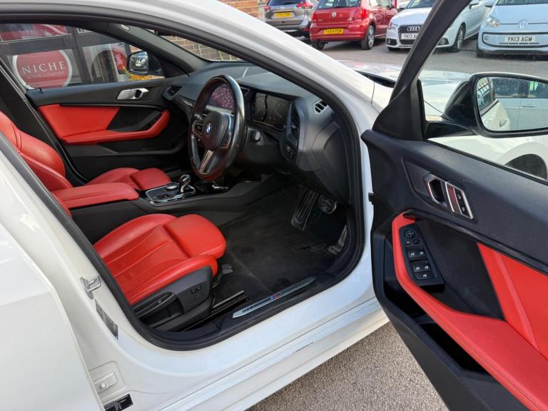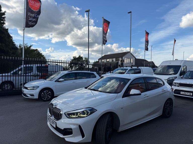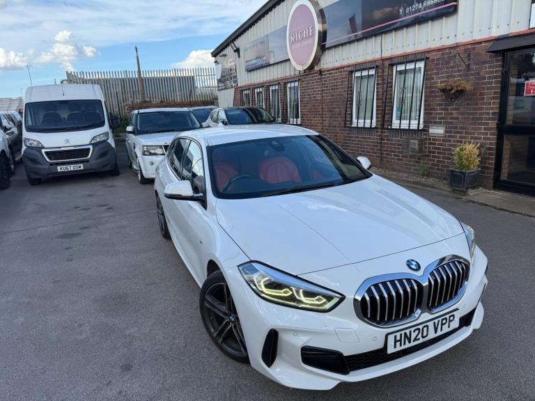 HERE AT NICHE WE AGAIN OFFER YOU THIS BEAUTIFUL LOOKING WHITE M SPORT ONE SERIES WITH RED LEATHER INTERIOR THAT COMES WITH 6 SERVICE STAMPS ON THE I DRIVE SYSTEM DONE 22K 46K 69K 73K 91K 101K AND LAST SERVICE DONE TILL 112K IN OCTOBER 2025 ALONG WITH A CURRENT MOT TILL 27/07/2026 AND A SPARE KEY IS PRESENTGEARBOX SERVICE WILL BE DONE AT POINT OF SALE ALONG WITH A FULL SERVICE WIDE SCREEN SAT NAVIGATION FULL RED LEATHER INTERIOR HEATED FRONT SEATS PARKING SENSORS FRONT AND REAR DIGITAL CIMATE CONTROL/AIR CON 18'' ALLOY WHEELS PRIVACY GLASS BLUETOOTH PHONE PREP VIRTUAL DASHBOARD DAYTIME RUNNING LIGHTS XENON HEADLIGHTS ANGEL EYES LED REAR LIGHTS MULTI FUNCTION STEERING WHEEL USB/AUX IN ELECTRIC LUMBAR SUPPORT CENTRE ARMREST IN RED LEATHER TRIP COMPUTER Authorized and Regulated By The Financial Conduct Authority Approved Dealer for CAR FINANCE 247, MOTO NOVO & FIRST RESPONSE FINANCE Zero Deposit Finance Available All Cars HPI Clear with Verified Mileage FREE 3 Months Nationwide WARRANTY DELIVERY Service Available Reserve Any Car with a 100 Refundable Holding Deposit Free Complimentary Collection from Local Airport and Train Stations Available Card Payments Accepted Open 7 Days Visit [Website URL removed] for our complete stock listThis 2020 BMW 1 Series 116d M Sport offers exceptional provenance, having been owned by just one careful keeper and boasting a clear vehicle history check. As a Euro 6 compliant model, it features a 1.5L diesel engine paired with a smooth dual-clutch automatic transmission. Inside, you'll find the M Sport trim enhanced by perforated Dakota leather in Magma Red with Grey highlights, complemented by the Connected Package Plus which includes Apple CarPlay. The vehicle is also equipped with LED headlights for improved visibility
