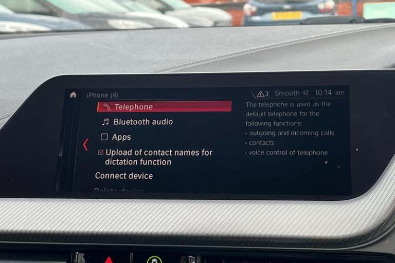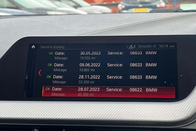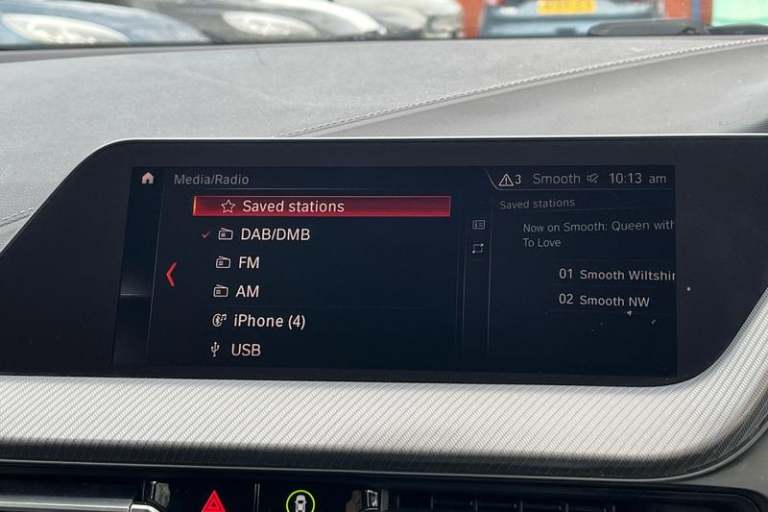 Active guard plus, Attentiveness assist, BMW Online services, BMW Teleservices, Check Control warning system for monitoring of lights and door/luggage compartment open warning, Connected eDrive Services, Eco pro mode, Integrated owners handbook, Oil sensor for level and grade, On board computer, Optimum shift indicator, Personal Profile, Pull away assistant, Speed limiter, Auto dimming rear view mirror, Automatic headlight beam throw control, Automatic windscreen wipers and automatic headlight, Body colour door handles, Body colour mirror caps, Chrome 'M' logo side designation, Chrome exhaust twin tailpipes round 90mm in left and right split, Chrome kidney grille frame with Satin Aluminium struts, Direction indicator side lights in exterior mirrors, Electric folding and anti dazzle exterior mirrors, Fading support, Follow me home headlights, Front and rear bumper system with replaceable deformation elements, Front and rear electric windows with open and close fingertip control, anti trap facility and comfort closing, Front door sill finishers in black plastic with M designation in metallic look, Green tinted heat protection glazing, Heated, electrically adjustable exterior mirror aspheric on driver side, convex on passenger side, High gloss shadowline window frame, Recess cover mirror frames and B/C pillar embelisher trim, High level third brake light, LED daytime running lights, LED eyebrow turn indicators, LED front fog lights, Lightweight engineering, Matt black air guide