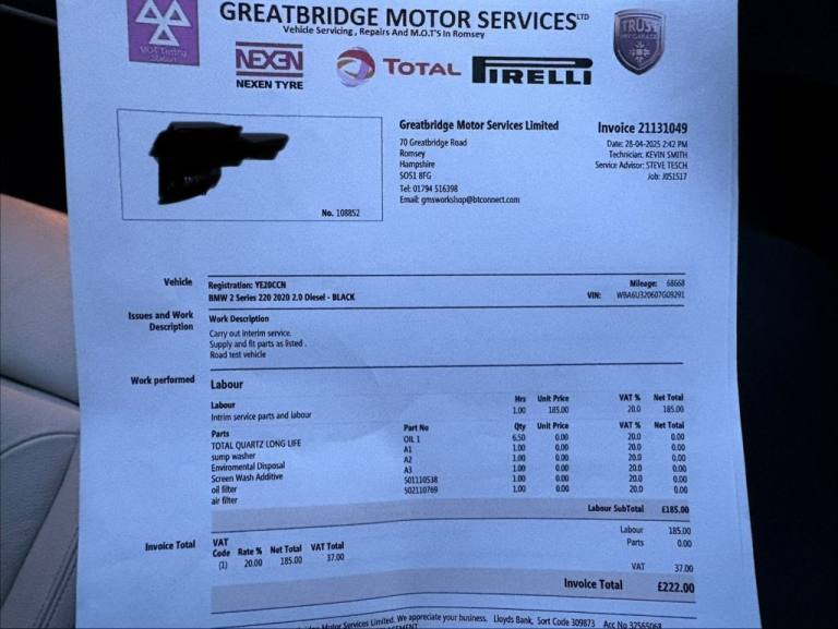 Discover this 2020 BMW 2 Series Active Tourer 220d M Sport, a refined and practical choice for those seeking a premium driving experience. This Euro 6 compliant model boasts a powerful yet efficient 2.0L diesel engine, delivering an impressive 0-60mph time of just 7.6 seconds. The M Sport trim enhances its sporty appeal, complemented by sleek black roof rails and striking LED headlights. Inside, youll find the convenience of Apple CarPlay and Bluetooth hands free with USB audio interface, ensuring seamless connectivity on every journey. Experience the open air with the expansive panoramic glass sunroof, which also offers an opening function for added versatility. This BMW 2 Series Active Tourer stands out with its remarkable fuel economy, achieving a highlight of 52 mpg, demonstrating its efficiency compared to other vehicles in its class. The combination of its dynamic performance, advanced technology, and thoughtful features makes this M Sport variant a compelling option for discerning drivers..12V Power Socket in Centre Console Front with Blanking Plug, 18in Alloy Wheels - M Double-Spoke - 486, Active Guard, Air Conditioning - Automatic with Two-Zone Control, Airbags, Alarm System Thatcham Category 1 with Remote Control and Engine Immobiliser - EWS IV, Ambiance Lighting - Switchable, Apple CarPlay, Armrest Front - Free Standing and can be Fixed in Five Positions, Automatic Tailgate, Automatically Dimming Rear View Mirror, BMW ConnectedDrive, BMW ConnectedDrive Online Services, BMW Emergency Call, BMW Navigation, BMW Professional Radio, BMW TeleServices, Battery Safety Cut Off, Bluetooth Hands Free with USB Audio Interface, Brake Pad Wear Indicator - Front and Rear, Bumper System Front and Rear - Replaceable Deformation Elements for Impacts Up to 9mph, Central Locking Switch - Doors - Fuel Filler Cap - Luggage Compartment, Check Control Warning System for Monitoring of Lights and Door-Luggage Compartment Open Warning, Child Proof Locking System - Rear Doors, Child Seat ISOFIX Attachment For The Two Outer Rear Seats And Front Passenger Seat, Condition Based Service, Contrast Stitching - Instrument Panel, Crash Sensor - Activating Central Locking Release - Hazard Warning Lights - Battery Safety Cut Off - Interior Lighting, Cruise Control with Brake Function, Cup Holders x2, DAB Digital Radio, DSC - Dynamic Stability Control Plus, Direction Indicator - Side Repeaters - Integrated in Exterior Mirrors, Direction Indicator Lights - Clear Lenses, Door Sill Finishers - M Designation - Front, Drive Performance Control - ECO PRO - Comfort - Sport - Sport Plus Modes, Dynamic Brake Lights, EDLC - Electronic Differential Lock Control, EPS - Electric Power Steering, Electric Windows - Front and Rear with Open-Close Fingertip Control - Anti-Trap Facility and Comfort Closing Function, Electrically Operated Parking Brake, Exhaust Tailpipe - Chrome Twin Round Left and Right Split, Extended Storage, Exterior Mirrors Electrically Adjustable, Exterior Parts in Body Colour, Exterior Trim - High-Gloss Shadowline, First Aid Kit and Warning Triangle, Floor Mats - Velour, Glove Box with Light, Grab Handles - Integrated in Roof Lining x4, Headlining - Anthracite, Heat Protection Glazing with Green Tint, Heated Windscreen Washer Jets, High Level Third Brake Light, Incorrect Fuelling Protection System, Instrument Cluster, Interior Lighting - Front Centre Over Interior Mirror and Rear Centre, Interior Trim - Aluminium Hexagon with Pearl Chrome Finisher, Kidney Grille - Extra