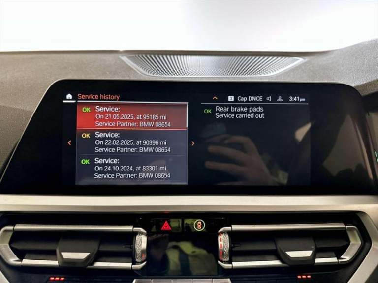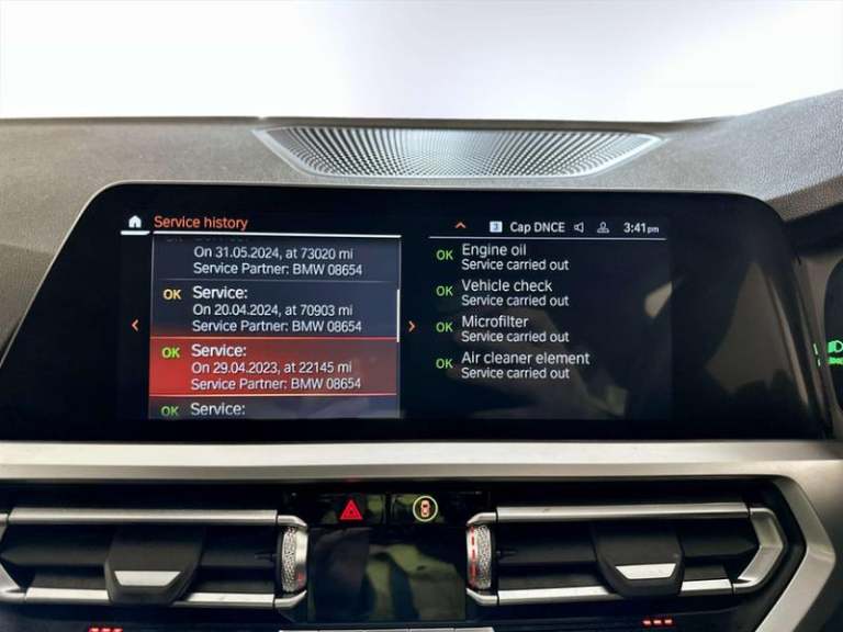 Introducing the stunning BMW 3 Series 2.0 320d M Sport Saloon! With only one previous owner, this sleek vehicle is sure to turn heads on the road. Finished in a sleek Black Sapphire colour, this BMW 3 Series comes with some fantastic extras to enhance your driving experience. The Interior Trim in Aluminium Mesh effect adds a touch of sophistication, while the Sun Protection Glazing ensures a comfortable ride even on the sunniest days. The luxurious Vernasca Leather upholstery in Black with Grey Stitching adds a touch of elegance to the interior. With a powerful 190 PS diesel engine and automatic transmission, this Euro 6 compliant BMW 3 Series offers a smooth and efficient driving experience. Don't miss out on the opportunity to own this exceptional vehicle. Contact us today to schedule a test drive and experience the luxury and performance of the BMW 3 Series for yourself!For peace of mind this vehicle has only had 1 registered owner, comes with service history and has completed a multi point AA inspection.Competitive finance is also available.We are open 7 days a week and have more than 1500 cars to choose from.All our Euro 4 Petrol and Euro 6 Diesel vehicles meet the ULEZ standard.Vehicle specification can be found below. From time to time vehicles have manufacturer recalls notified. Please read our recall policy on our website for further information. 12V Power Socket in Front Storage Compartment, BMW Connected Package Professional, BMW ConnectedDrive Online Services, BMW Emergency Call, BMW TeleServices, Bluetooth Hands Free with USB Audio Interface, DAB Digital Radio, Shark Fin Aerial, Stereo Speaker System, Attentiveness Assistant, Brake Pad Wear Indicator - Front and Rear, Condition Based Service, Cruise Control with Brake Function, Drive Performance Control, Driving Experience Modes, OBC - On-Board Computer, Oil Sensor For Level and Grade - Warning by Check Control System, Optimum Shift Indicator, PDC - Park Distance Control - Front and Rear, Parking Assistant, TPMS - Tyre Pressure Monitoring System, iDrive Controller, 18in Alloy Wheels - M Light Double-Spoke Style 790 M - Bicolour Orbit Grey, Acoustic Glazing, Active Air Stream Kidney Grille, Bumper System - Front and Rear, Electric Windows - Front and Rear, Exhaust Tailpipes - Split Left and Right - 90mm Diameter, Exterior B Pillar - Black Matt, Exterior Mirrors - Electrically Folding with Anti Dazzle, Exterior Parts in Body Colour, Exterior Trim - High-Gloss Shadowline, Heat