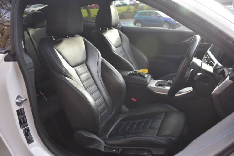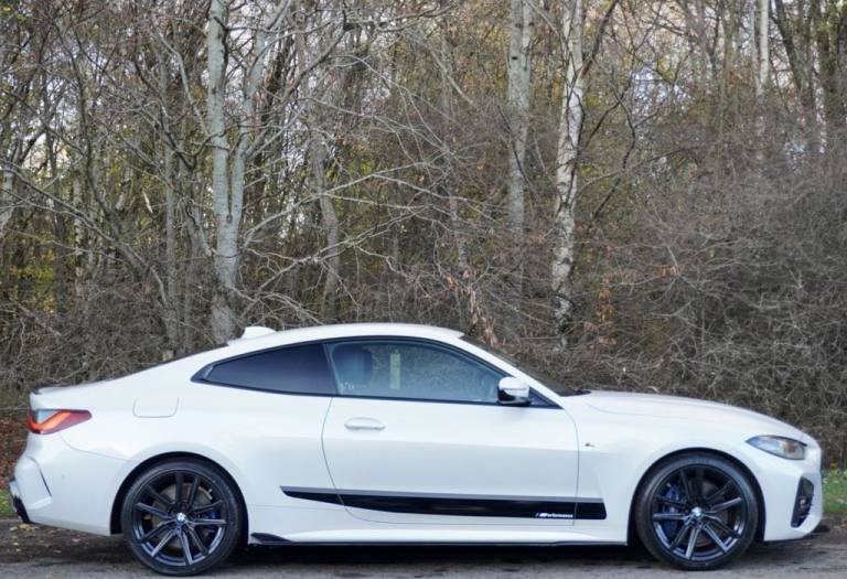 2020/70 BMW 420d M Sport Pro MHT 2 door hybrid coupe (Euro 6) - Automatic - Mineral White pearlescent paint with full black Vernsaca leather interior (heated front seats and steering wheel) - only 28k miles - only 1 former keeper - 2 remote key fobs and digital key card - full BMW main dealer service history - just serviced for sale by independent BMW specialist with I Drive updated - fresh 12 months MOT with no advisories - Platinum warranty - full 12 months AA roadside assistance also included! Super specification including M Performance Styling Package - 19" BMW Individual 793M alloy wheels freshly refurbished in gloss black - M Sport Pro Package - Individual Shadowline headlights - Sun Protection glazing - Comfort Package - Technology Package - Heated steering wheel - Harmon Kardon audio - Wifi Preparation - M Sport Blue brakes - Enhanced bluetooth and wireless charging! Full 12 months MOT Platinum warranty included 12 months AA breakdown cover Autotrader Highly Commended Dealer 2018/19/20 AA Approved Dealer 2017/18/19/20 CarGurus Top Rated Dealer 2018/19/20 We are close to many local bus and train links. The nearest train station is Hairmyres which is on the East Kilbride line, if possible we will collect you if arranged by prior appointment. We have signed up to the AA Dealer Promise which means you are in safe hands dealing with us as an AA partner! All cars are provided with an AA history check, a minimum of 6 months MOT on all cars and 12 months AA breakdown cover or member upgrade as well as other exclusive AA benefits! Finance available?! Longer warranty options available!? Poor Credit = No Problem!? Part Exchange welcome with or without MOT?! Credit & Debit Cards accepted?! Price checked to ensure best value!? Over 50 cars in stock!? Over 95% of our customers rate us 5 stars!.19in Alloy Wheels - BMW Individual Double-Spoke Style 793 - Bicolour Orbit Grey with Mixed Tyres, 12V Power Socket in Front Centre Console, 18in Alloy Wheels - Double Spoke Style - 848 Bicolour Jet Black, 2 Headrests - Non-Folding - Rear, 2 Three-Point Seat Belts - Outer, 48v System, Active Guard Plus, Air Conditioning - Automatic with Three-Zone, Airbags, Alarm System - Thatcham 1 with Remote Control and Engine Immobiliser, Ambient Lighting, Armrest - Integrated in Door Trim Front and Rear and in Front on the Centre Console, Attentiveness Assistant, Automatic Lock when Driving Away Selectable, BMW Connected Package Professional, BMW ConnectedDrive Online Services, BMW Emblem on Engine Compartment Lid and Tailgate, BMW Emergency Call, BMW Kidney Grille with Mesh Grille - Front Side of the Nuggets in Matt Aluminium and Frame in Chrome High-Gloss, BMW Live Cockpit Professional, BMW Mobility Kit, BMW TeleServices, Battery Safety Cut-Off in the Event of an Accident, Bluetooth Hands-Free Facility with USB Audio Interface and Audio Streaming, Brake Pad Wear Indicator - Front and Rear, Bumper System - Front and Rear, Central Locking Switch for All Doors - Fuel Filler Cap - Luggage Compartment, Check Control Warning System for Monitoring of Lights and Door-Luggage Compartment Open Warning, Child Proof Locking System - Rear Doors, Child Seat ISOFIX Attachment for the Two Outer Rear Seats, Condition Based Service, Crash Sensor, Cruise Control with Brake Function, Cup Holders in Centre Console - Front - 2 Cupholder Inserts with Clamping Elements - Inlay Matt Black, DAB Digital Radio, DSC - Dynamic Stability Control Plus, Door Exit Lighting - Front and Rear - Left-Right, Door Pockets - Front and Rear, Door Sill Finishers Front - Aluminium - with BMW Designation, Driving Experience Modes, Dynamic Brake Lights, EPS - Electric Power Steering, Electric Windows - Front and Rear - Drivers Side for All 4 Windows - Anti-Trap Facility, Electro Mechanical Parking Brake With Automatic Drive-Away Release and Auto-Hold Function, Exhaust Tailpipes - Split Left and Right - 90mm Diameter, Exterior Mirrors - Electrically Folding with Anti Dazzle, Exterior Trim - High-Gloss Shadowline, First Aid Kit and Warning Triangle, Floor Mats - Velour, Front Apron - Plastic in Body Colour, Fuel Filler Cap - Right - Rear - in Body Colour, Gear Selection Lever with M-Specific Designation, Glove Compartment - Illuminated - With Separate Small Compartment, Glove Compartment Lighting, Grab Handles - I