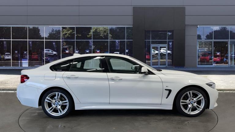 This 2020 BMW 4 Series Gran Coupe 420i M Sport offers a superb blend of style and practicality. As a Euro 6 compliant model, it features a responsive 2.0 litre petrol engine, delivering an impressive 0-62mph acceleration time of just 7.7 seconds. The M Sport trim enhances its sporty appeal, and you'll appreciate the generous boot space, making it ideal for both daily commutes and longer journeys.The performance figures for this 420i M Sport demonstrate its capability, showing how it stands out from other vehicles in its class. The combination of its dynamic acceleration and the ample boot space means you don't have to compromise on either driving enjoyment or everyday usability. This BMW 4 Series Gran Coupe is a well rounded choice for those seeking a premium driving experience with practical benefits..Velour floor mats, Heated windscreen washer jets, Automatic Stability Control (ASC), Drive performance control with ECO PRO comfort + sport mode, Front/rear park distance control (PDC), Automatic tailgate operation, Professional multimedia navigation system, Auto dimming rear view mirror, M Sport instrument cluster, Lightweight engineering, DAB tuner, Body colour rear bumper, Follow me home headlights, Automatic air conditioning with two zone control, Front folding sliding armrest with storage compartment, Welcome lighting, Extended lighting package - 4 Series Gran coupe, Side impact protection, Rear child seat isofix attachment with passenger airbag deactivation, Central locking switch for all doors, fuel filler cap and luggage compartment, Electronic differential lock, Sunvisors with vanity mirrors and ticket pocket, Reduced rolling resistance tyres