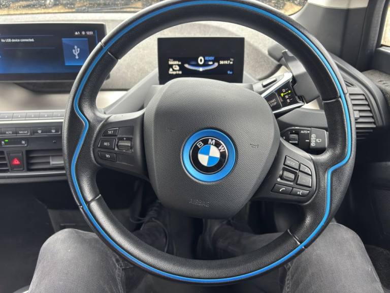 .12V Power Socket - Centre Console, 19in Alloy Wheels - i BiColour Light Turbine Styling - Mixed Tyres - 429, 2.4 kW AC Charging, 5.7in Colour TFT Display - Instrument Cluster, AC Fast Charge - Multi Phase Preparation, AC Fast Charge Cable, Active Differential Brake - ADB Sport - Electronic Differential Lock in DSC-Off Mode, Additional 12V Power Socket in Right-Hand Side of Boot, Additional Detachable Cupholder, Air Conditioning - Automatic - Single Zone, Airbags, Alarm System, Apple CarPlay, Armrest - Front, BMW ConnectedDrive Online Services, BMW ConnectedDrive Services and Applications, BMW Emergency Call, BMW Integrated Differential Transmission, BMW Mobility Kit with Tyre Sealing System, BMW Professional Radio, BMW TeleServices, Battery Safety Cut Off - For Drivetrain Battery and 12v Battery, Bluetooth Hands Free with USB Audio Interface, Brake Pad Wear Indicator - Front and Rear, Capparis White - i Blue Highlight, Bumper System - Front and Rear, Cabin Pre-Conditioning via iDrive or BMW i Remote App, Central Locking Switch, Check Control Warning System for Monitoring of Lights and Door-Luggage Compartment Open Warning, Child Seat ISOFIX Attachment - Rear x2, Condition Based Service, Connected eDrive Service, Contrast Highlights in BMW i Blue - Kidney Grille Surrounds and Highlighting Below Doors, Crash Sensor, Cruise Control with Brake Function, Cupholders - Centre, DAB Digital Radio, DC Rapid Charge Preparation, DSC - Dynamic Stability Control Plus, Daytime Running Lights - LED with U Shaped BMW i Design, Direction Indicator - Side Repeaters - Integrated in Exterior Mirrors, Direction Indicator Lights Using LED Technology Located on Front Bumper, Door Sill Finished in Black, Drive Performance Control with ECO PRO Plus - ECO PRO and Comfort Modes, Dynamic Brake Lights, ECO PRO Mode to Provide Improved Range, ECO PRO Plus Mode to Maximise the Potential Range - Limits Top Speed for 56mph, EPS - Electric Power Steering with Servotronic, Electric Handbrake Located on Centre Console Between Driver and Passenger Seats, Electric Windows - Front with Open-Close Fingertip Control - Anti-Trap Facility and Comfort Closing Function, Electronic Display of Drivetrain Information and Battery Range and Temperature, Electronic Drive Selector Located on Steering Column to Select: Drive-Reverse-Neutral-Park, Extended Storage, Exterior Mirrors - Electrically Folding with Anti Dazzle, Exterior Mirrors - Finished In High-Gloss Black - Electrically Adjustable and Folding, Ex