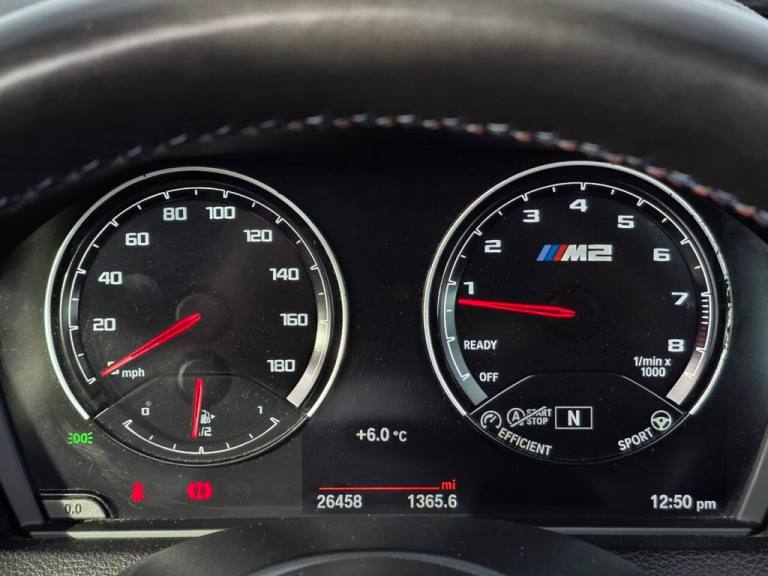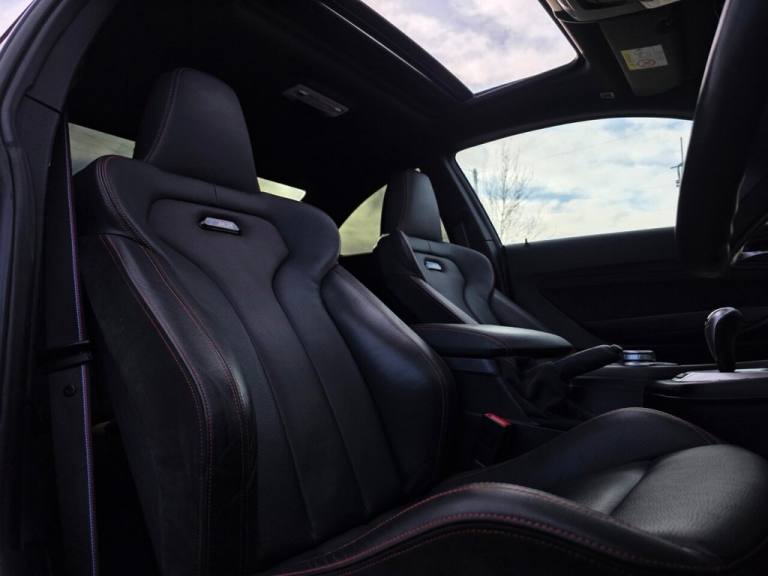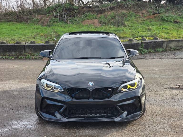 Here we have an absolutely standout BMW M2 3.0 BiTurbo GPF Competition Coupe DCT finished in Sapphire Black metallic, offered by Hampton Car Sales and backed by over 220 verified five star Google reviews for total peace of mind. Covering just 26,458 miles and supported by a full service history with the all-important running-in service completed on time, this M2 Competition is a rare combination of meticulous ownership, exceptional specification and serious performance. From factory it boasts an incredible level of standard equipment expected of an M car, paired with a host of highly desirable optional extras including BMW Icon Adaptive LED headlights for exceptional night-time visibility, an electric glass sunroof bringing light and air into the cabin, the Harman Kardon loudspeaker system delivering premium audio quality, the M2 Comfort Pack and M2 Plus Pack enhancing everyday usability and driver-focused technology, a heated steering wheel for year-round comfort, sun protection glazing for a more refined cabin environment and the upgraded M2 Competition braking system providing immense stopping power and confidence. What truly sets this example apart, and why we call it an insane build, is the extensive list of over £20,000 worth of visual and performance enhancements, making it one of the highest specification M2 Competitions available. Visually the car sits perfectly thanks to Eibach Pro lowering springs and 12mm spacers, filling the arches beautifully alongside the genuine 763M alloy wheels and the formidable 2NH big brake kit, while upgraded DRLs, a full carbon fibre exterior styling kit and a full Milltek exhaust system including mid pipe and downpipe give the car an aggressive presence and an intoxicating soundtrack. Performance has been taken to the next level with BM3 tuning on a transferable licence, allowing you to run the stock 410 bhp or unleash up to 560 bhp on map 3, all safeguarded by the installation of a 4-pin Insane crank hub for ultimate reliability and peace of mind. This is a truly exceptional BMW M2 Competition that blends factory pedigree, tasteful enhancements and serious power, ready to be enjoyed by its next owner..12V Power Socket - Centre Console, 12V Power Socket - Passenger Footwell, 19in M Y-Spoke Alloy Wheels Style 788M with Mixed Tyres, Active M Differential, Air Conditioning - Automatic - Dual Zone Control, Airbags, Airblades - Cerium Grey, Alarm System - Thatcham 1 with Remote Control and Engine Immobiliser, Ambient Lighting - Switchable BMW Classic Orange - Cold White - LED, Apple CarPlay, Armrest - Front with Sliding Adjustment, Automatically Dimming Rear View Mirror, BMW ConnectedDrive Online Services, BMW ConnectedDrive Services, BMW Emergency Call, BMW Mobility System, BMW Professional Radio with Single CD Player - with MP3 Playback Compatibility, BMW TeleServices, Battery Age Recognition Function, Battery Safety Cut Off, Black Optic Display Instrument Cluster with M Specific Display - Red Needles and M2 Competition Welcome Screen, Bluetooth Hands-Free Facility with USB Audio Interface and Audio Streaming, Brake Pad Wear Indicator - Front and Rear, Bumper System - Front and Rear, Central Locking Switch - Doors - Fuel Filler Cap - Luggage Compartment, Check Control Warning System for Monitoring of Lights and Door-Luggage Compartment Open Warning, Child Seat ISOFIX Attachment for the Two Outer Rear Seats, Coat Hooks - Integrated into Rear of B Pillar, Condition Based Service, Crash Sensor, Cruise Control with Brake Function, Cup Holders x2 with Sliding Cover and Inlay Mat, DAB Digital Radio, DSC - Dynamic Stability Control Plus, Darkened Tail Lights with LED Light Bars, Daytime Driving Lights, Direction Indicator - Side Repeaters - Integrated in Exterior Mirrors, Direction Indicator Lights - Clear Lenses, Door Sill Finishers - M2 Competition Designation, Drive Performance Control - ECO PRO - Comfort - Sport - Sport Plus, Dynamic Brake Lights, Electric Windows - Front and Rear with Open-Close Fingertip Control - Anti-Trap Facility and Comfort Closing Function, Engine Cover with BMW Roundel and TwinPower Turbo Designation, Exhaust Tailpipes - Twin Dual - Dark Chrome with Bevelled Design, Extended Lighting, Extended Storage, Exterior Mirrors - Electrically Folding with Anti Dazzle, Exterior Trim - High-Gloss Shadowline, First Aid Kit and Warning Triangle, Floor Mats - Velour, Full Black Panel Display, Glove Box Handle with Chrome Surround and Key Lock, Handbrake Lever and Gear Lever Knob in Leather, Heat Protection Glazing with Green Tint, Heated Seats - Front, High Level Third Brake Light, High-Gloss Shadowline with Extended Contents, Instrument Cluster, In