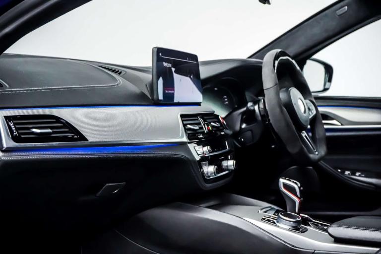This BMW M5 is finished in and this vehicle comes with the following specification - Marina Bay Blue an this vehicle comes with the following specification - Comfort Plus package M sports exhaust system Heated steering wheel Soft-Close Doors Climate-controlled front seats Heated Front & Rear seats Adaptive LED headlights Driving Assistant Parking assistance system Plus.