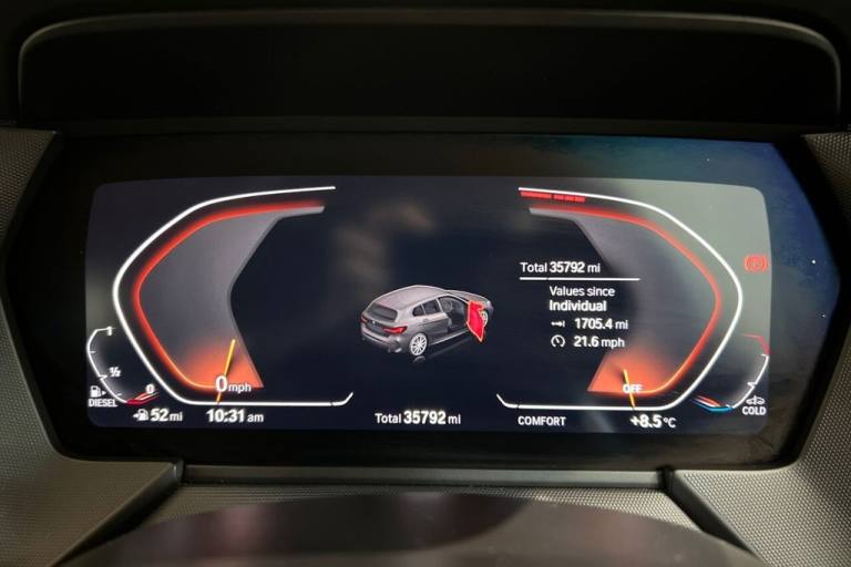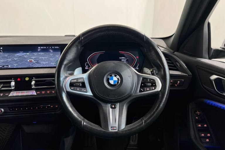 This 2021 BMW 1 Series 118d M Sport is a standout example, having been owned by just one person and boasting a remarkably low mileage of 35,789 miles for its age. This Euro 6 compliant model features a responsive 2.0L diesel engine, delivering an impressive 0-60mph time of just 8.4 seconds. The M Sport trim enhances its sporty appeal, and youll appreciate the convenience of the Park Assistant, complete with a rear camera, and the comfort of a heated steering wheel. Driving is made easier and safer with LED headlights, a rain sensor that automatically activates the headlights, and Bluetooth hands free connectivity with a USB audio interface for your music and calls. Beyond its impressive performance and technology, this BMW 1 Series offers practical benefits. The large boot space ensures you have plenty of room for shopping, luggage, or sports equipment, making it a versatile choice for everyday life. The combination of its low mileage, single owner history, and the inclusion of desirable features like the Park Assistant and heated steering wheel clearly sets this vehicle apart from others you might find. Lifetime warranty available on this car, plus a £1,000 finance contribution when you part exchange. Voted UK Car Supermarket of the Year two years running, we offer 0% finance, part exchange, and lifetime warranties across our entire range. Every car is thoroughly inspected before sale and comes with a full history check, so you can buy with complete peace of mind. Buy with confidence on our best finance rates. Proud winners of the CarGurus Top-Rated Dealer 2022 and the MotoNovo Extra Mile Award. .12V Power Socket in Centre Console Front with Blanking Plug, 18in Alloy Wheels - M Double-Spoke Style 819 - Bi-Colour, Active Guard Plus, Additional Storage Compartment, Air Conditioning Automatic with Two-Zone Control, Airbags, Alarm System - Thatcham 1 with Remote Control and Engine Immobiliser, Alpine White, Armrest - Front - Folding with Storage Compartment, Attentiveness Assistant, Automatically Dimming Rear View Mirror, Bluetooth - Audio Streaming - with Compatible Devices, Bluetooth Hands Free with USB Audio Interface, BMW Connected Package Professional, BMW ConnectedDrive Online Services, BMW Emergency Call, BMW Live Cockpit Professional, BMW Mobility Tyre Sealing System, BMW TeleServices, Bumper System Front and Rear - Replaceable Deformation Elements for Impacts Up to 9mph, Central Locking Switch - Doors - Fuel Filler Cap - Luggage Compartment, Check Control Warning System for Monitoring of Lights and Door-Luggage Compartment Open Warning, Child Seat ISOFIX Attachment For The Two Outer Rear Seats And Front Passenger Seat, Childproof Locking System - Rear Doors and Electric Windows, Contrast Stitching - Instrument Panel, Crash Sensor, Cruise Control with Brake Function and Speed Limiter, Cupholders - Two Front Centre Console, DAB Digital Radio, Dead-locking Function System to all Doors, Direction Indicator Side Lights Integrated in Exterior Mirrors, Door Sill Finishers in Black Plastic with Inserted M Designation in Metallic Look - Front Only, Drive Performance Control with ECO PRO and Comfort Modes, Drive-Away Locking System on All Doors-Luggage Compartment - Can Be De-Activated in iDrive Settings, DSC - Dynamic Stability Control Plus, ECO PRO Mode, Electric Handbrake, Electric Windows - Front and Rear with Open-Close Fingertip Control - Trap Release and Child Lock Function, EPS - Electric Power Steering, Exhaust Tailpipe 90mm - Chrome Twin - Round - Left and Right - Split, Extended Lighting, Exterior Mirrors - Electrically Folding with Anti Dazzle, Exterior Parts in Body Colour, Exterior Trim - High Gloss Shadowline, First Aid Kit and Warning Triangle, Floor Mats in Anthracite Velour with Contrasting Colour Seam to Match Contrast Stitching on Instrument panel, Front Windscreen Wipers with Integrated Washer Jets, Glove Box with Light, Grab Handles - Integrated in Roof Linings - Four, Headlining - Anthracite, Heat Protection Glazing with Green Tint, High Level Third Brake Light, Illuminated Boston Interior Trim, Incorrect Fuelling Protection Syste