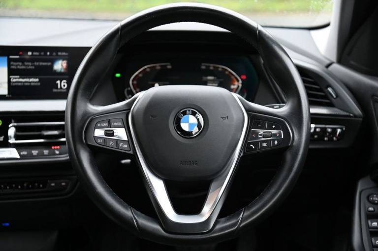 Prestige Car Supermarket in York presents the 2021 BMW 1 Series 1.5 118i Sport (LCP) DCT, finished in Snapper Rocks Blue with Nivala Cloth-Sensatec Anthracite upholstery with grey highlights and equipped with the Comfort Pack I. This stylish hatchback features 17in Double Spoke Style 549 alloys, LED headlights, LED front fog lights, High Gloss Shadowline exterior trim, heated and electrically adjustable mirrors, chrome exhaust tailpipe and Sport exterior detailing. The cabin offers Sport front seats, a Sport multi-function leather steering wheel, automatic two-zone air conditioning, illuminated Berlin interior trim, a folding front armrest and practical 60-40 split rear seats. Technology highlights include BMW Live Cockpit Professional, BMW Connected Package Professional, DAB radio, Bluetooth with audio streaming, USB interface, BMW Emergency Call, BMW TeleServices, Cruise Control with Brake Function, Park Distance Control front and rear, rain sensor with automatic headlight activation and the integrated iDrive owners handbook. Driver assistance is supported by Active Guard Plus, Attentiveness Assistant, Dynamic Stability Control Plus, Performance Control, Servotronic steering and the Comfort Pack I, which adds front and rear Parking Distance Control enhancements and additional convenience features. With features such as automatic start-stop, keyless engine start, green-tinted heat protection glazing and an electrically operated bootlid with model designation, this 118i Sport delivers a well-balanced combination of style, efficiency and everyday usability..Nivala Cloth-Sensatec - Anthracite with Grey Highlight, 12V Power Socket in Centre Console Front with Blanking Plug, 17in Alloy Wheels - Double Spoke - Style 549, Active Guard Plus, Additional Storage Compartment, Air Conditioning Automatic with Two-Zone Control, Airbags, Alarm System - Thatcham 1 with Remote Control and Engine Immobiliser, Armrest - Front - Folding with Storage Compartment, Attentiveness Assistant, Automatically Dimming Rear View Mirror, BMW Connected Package Professional, BMW ConnectedDrive Online Services, BMW Emergency Call, BMW Live Cockpit Professional, BMW TeleServices, Bluetooth - Audio Streaming - with Compatible Devices, Bluetooth Hands Free with USB Audio Interface, Bumper System Front and Rear - Replaceable Deformation Elements for Impacts Up to 9mph, Central Locking Switch - Doors - Fuel Filler Cap - Luggage Compartment, Check Control Warning System for Monitoring of Lights and Door-Luggage Compartment Open Warning, Child Seat ISOFIX Attachment For The Two Outer Rear Seats And Front Passenger Seat, Childproof Locking System - Rear Doors and Electric Windows, Contrast Stitching - Instrument Panel, Crash Sensor, Cruise Control with Brake Function and Speed Limiter, Cupholders - Two Front Centre Console, DAB Digital Radio, DSC - Dynamic Stability Control Plus, Dead-locking Function System to all Doors, Direction Indicator Side Lights Integrated in Exterior Mirrors, Door Sill Finishers in Black Plastic with Inserted BMW Designation in Metallic Look - Front Only, Drive Performance Control with ECO PRO and Comfort Modes, Drive-Away Locking System on All Doors-Luggage Compartment - Can Be De-Activated in iDrive Settings, ECO PRO Mode, EPS - Electric Power Steering, Electric Handbrake, Electric Windows - Front and Rear with Open-Close Fingertip Control - Trap Release and Child Lock Function, Exclusive Sport Exterior Features, Exhaust Tailpipe - Chrome - Single Round 90mm - Left, Exterior Mirrors - Heated - Electrically Adjustable, Exterior Parts in Body Colour, Exterior Trim - High Gloss Shadowline, Front Windscreen Wipers with Integrated Washer Jets, Glove Box with Light, Grab Handles - Integrated in Roof Linings - Four, Heat Protection Glazing with Green Tint, High Level Third Brake Light, Illuminated Berlin Interior Trim, Integrated Owners Handbook - Within iDrive Menu, Interior Lighting, Kidney Grille - Chrome Frame with High-gloss Black Struts, LED Fog Lights - Front, LED Headlights, Locking Wheel Bolts, Model Designation on Elec