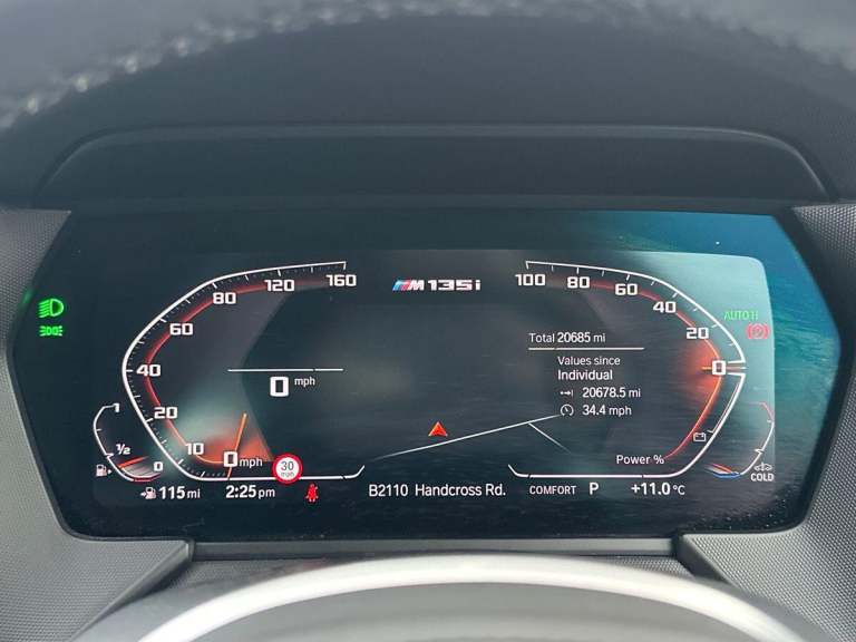 This 2021 BMW 1 Series M135i presents an exceptional ownership proposition, having been meticulously maintained by a single owner and boasting a remarkably low mileage of just 20,000 miles. Under the bonnet, a potent 2.0 litre petrol engine powers this Euro 6 compliant vehicle, delivering exhilarating performance through its four wheel drive system. The M135i variant comes equipped with a comprehensive Technology Pack, enhancing your driving experience with Bluetooth connectivity, a Head Up Display, and LED headlights. Further convenience is provided by the Park Assistant, which includes a rear camera, and the comfort of Perforated Dakota Leather upholstery in Black with Grey highlights.The impressive acceleration of this BMW 1 Series, achieving 0 to 62 miles per hour in a mere 4.8 seconds, clearly sets it apart from other vehicles in its class. This rapid response is complemented by the advanced BMW Adaptive LED Headlights and the integrated Head Up Display, offering superior visibility and driver focus. The inclusion of a rear camera and parking assistance makes manoeuvring effortless, while the generous boot space ensures practicality for everyday use and longer journeys.