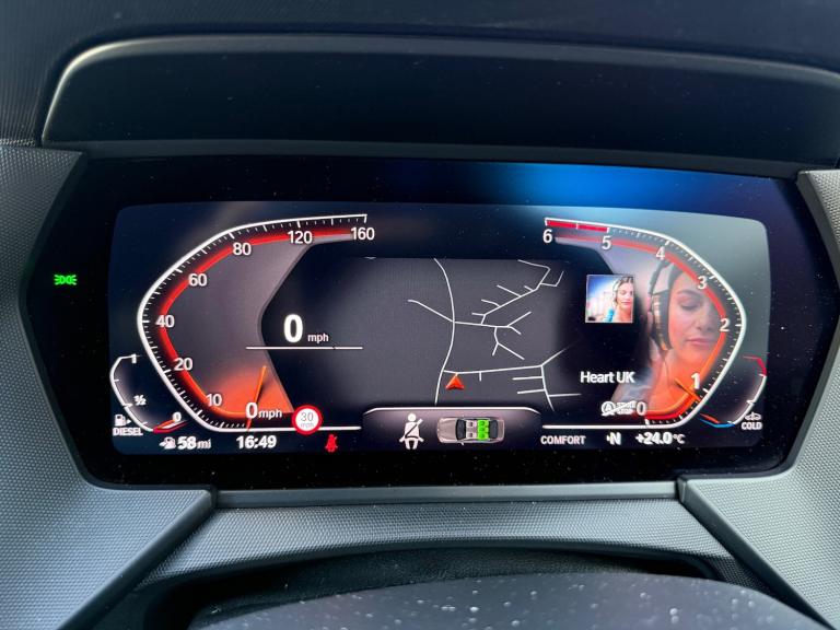 2 tone horn, Airbag - Front driver and passenger, front and rear head, front side, curtain head protection, manual deactivation of front passenger airbag possible, BMW emergency call, Crash sensor activating of airbags, Unlocking doors, hazard warning lights, fuel cut off, interior lighting+activation of safety battery terminal clamp, Rear child proof door locks, Seat belt security check for driver and front passenger, Seatbelt warning, Side impact protection, Three point seat belts on all seats including front belt stopper, pyrotechnic belt tensioners and belt force limiters, Tyre pressure monitoring system, Warning triangle and first aid kit, Central locking switch for all doors, fuel filler cap and luggage compartment, Deadlocking function system to all doors, Drive away locking system on all doors and luggage compartment, Locking wheel bolts, Remote control with integrated key with High-gloss Black inlay and M designation and 1 button for open/ close lock, window, open luggage compartment, Start/stop button with Comfort Go keyless engine start and auto Start/stop deactivation button, Thatcham Cat.1 alarm and immobiliser, Two remote control key with integrated key - one button for open and close doors/fuel flap/tailgate and separate button for unlock luggage compartment, Anti lock braking system (ABS) with cornering brake control, Brake drying, Braking readiness, City braking function, Dynamic stability control + (DSC+), Dynamic Traction Control - DTC, Electrically operated hand brake, Rear brake discs, Trailer stability control, Ventilated front disc brakes, 6 speed manual transmission, Electronic differential lock, 42 Litre fuel tank, Balancer shaft, Diesel particulate filter, DOHC valvetrain with two upper camshafts, Double VANOS, High precision injection, Incorrect fuelling protection, Performance Control, TwinPower turbocharger with variable vane turbine geometry, Anti roll bar front and rear, Drive performance control with ECO PRO comfort + sport mode, M sport suspension, Twin tube gas filled shock absorbers with degressive characteristic curve, Automatically dimming rear view mirror, Body colour mirror caps, Exterior mirrors - electrically folding with anti-dazzle, Heated, electrically adjustable exterior mirror aspheric on driver side, convex on passenger side, Electric windows - front and rear, with open/close fingertip control and trap release, Rain sensor with automatic headlight activation, Body colour door handles, Chrome 'M' log